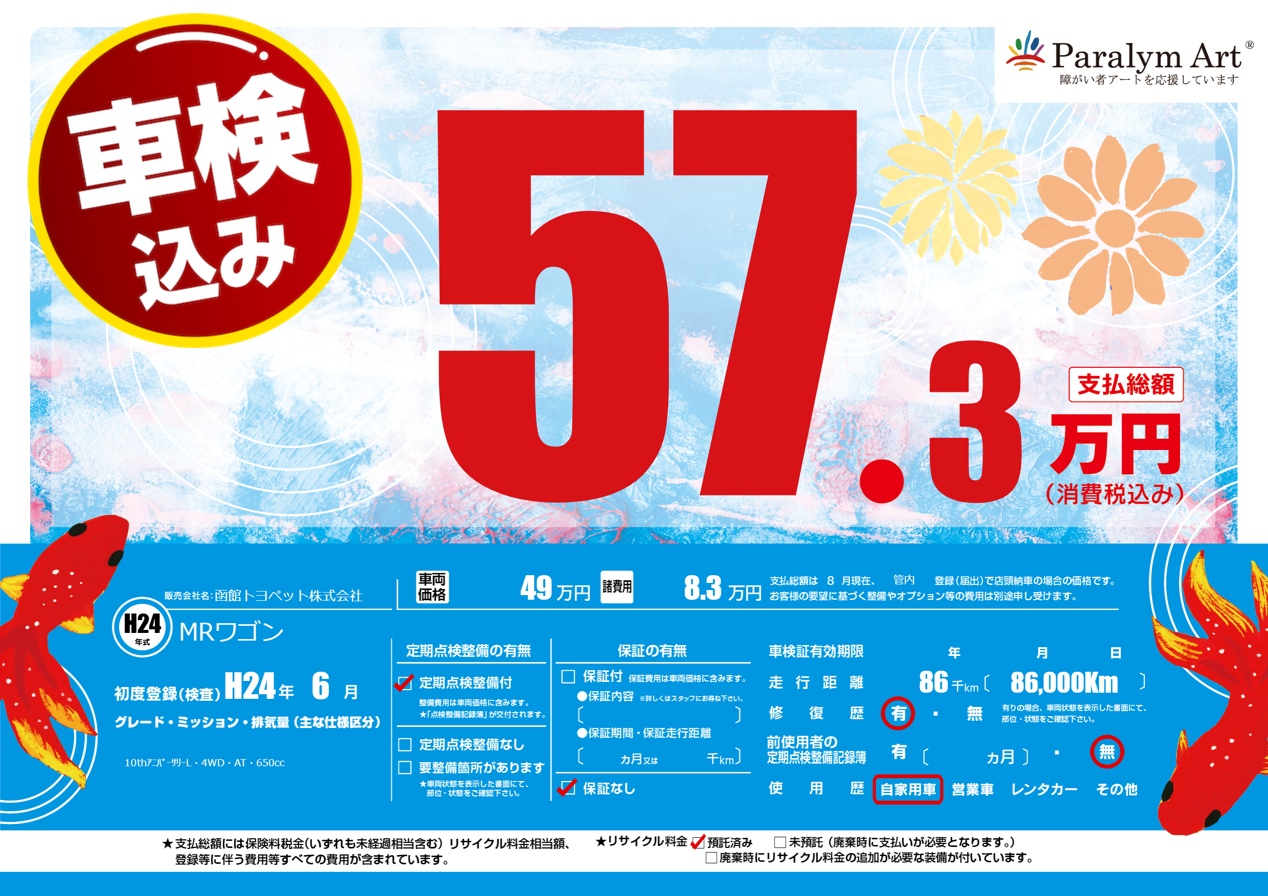 | 車名 | MRワゴン | グレード ミッション 排気量 |