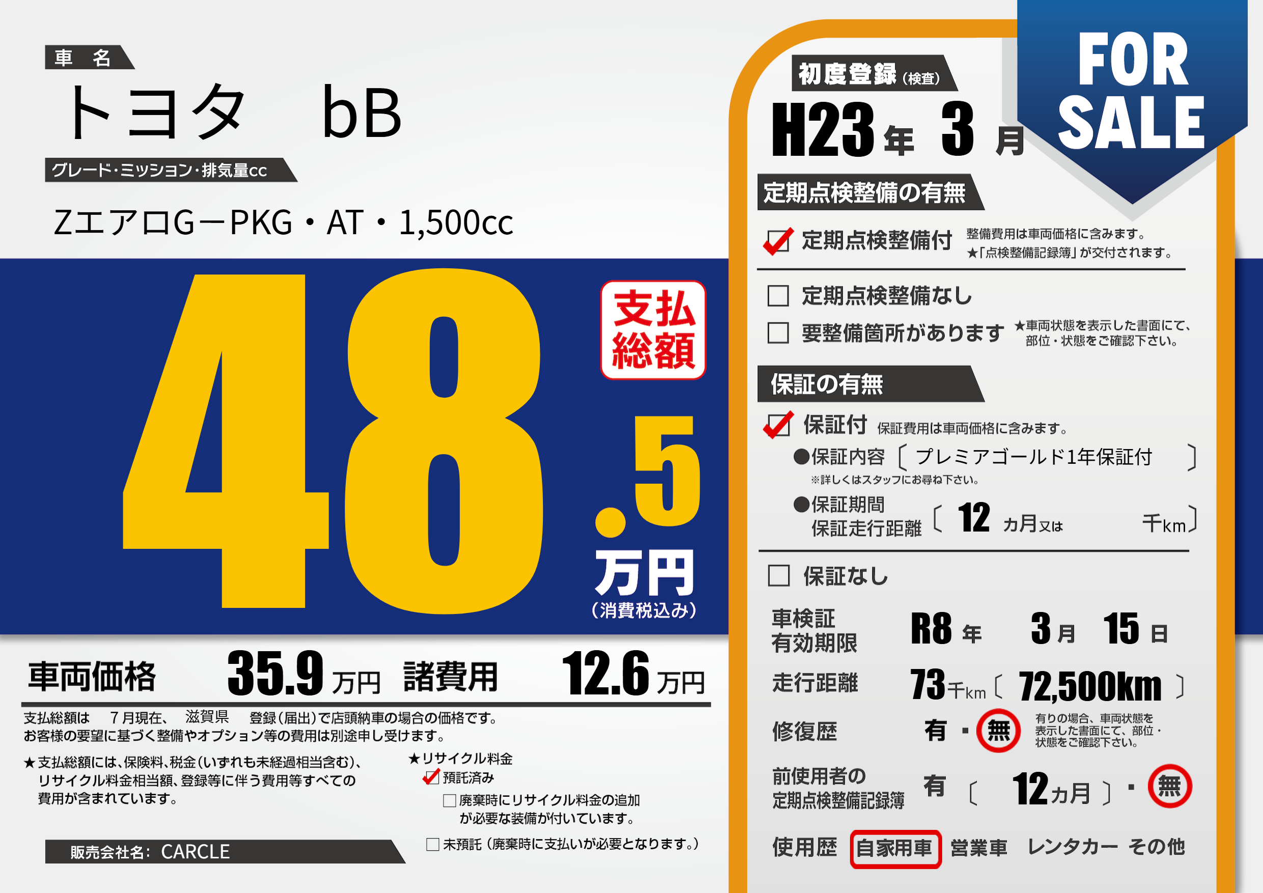 なし | 車検制限 | R8年3月15月 |