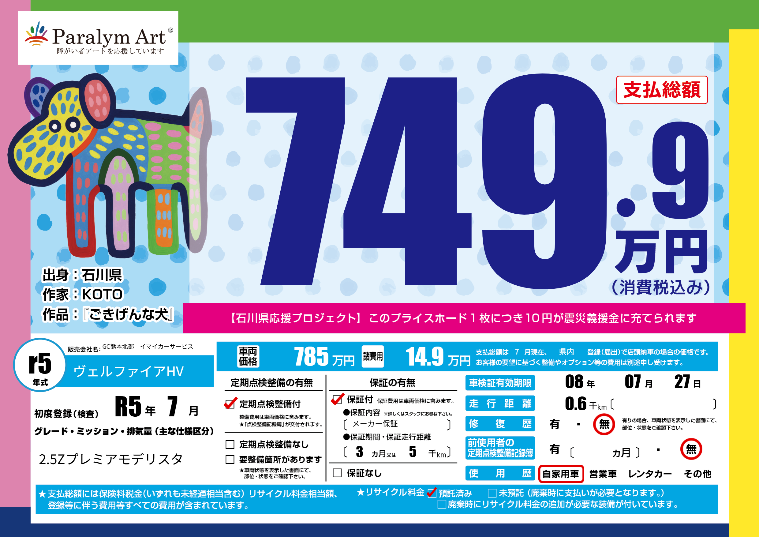 | 走行キロ | - | 初年度登録 | R5年7月 |