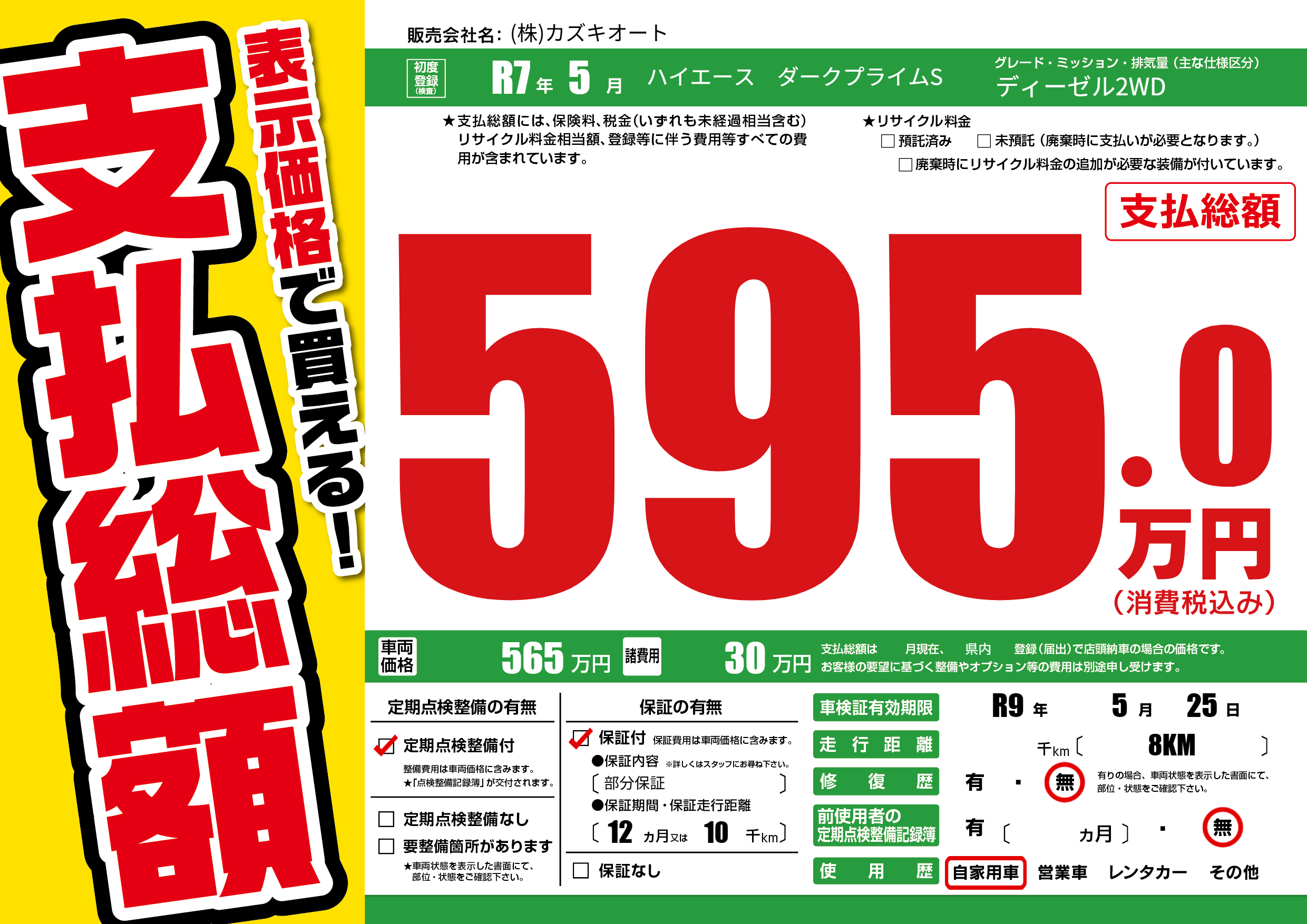 | 走行キロ | - | 初年度登録 | R7年5月 |