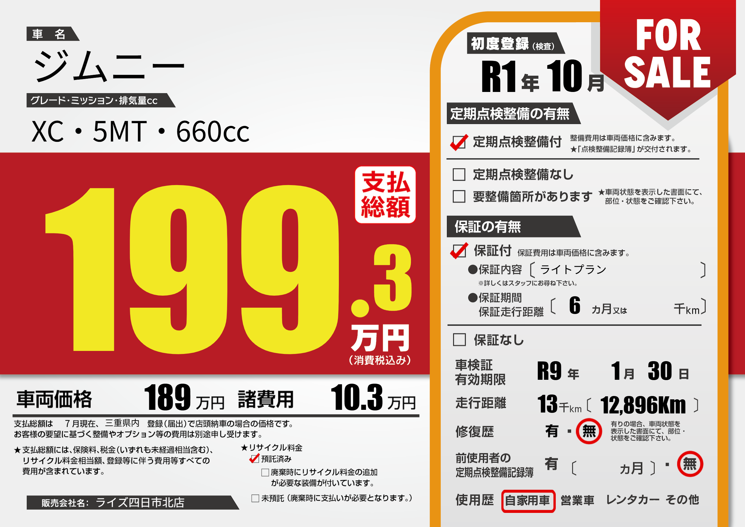 なし | 車検制限 | R9年1月30月 |