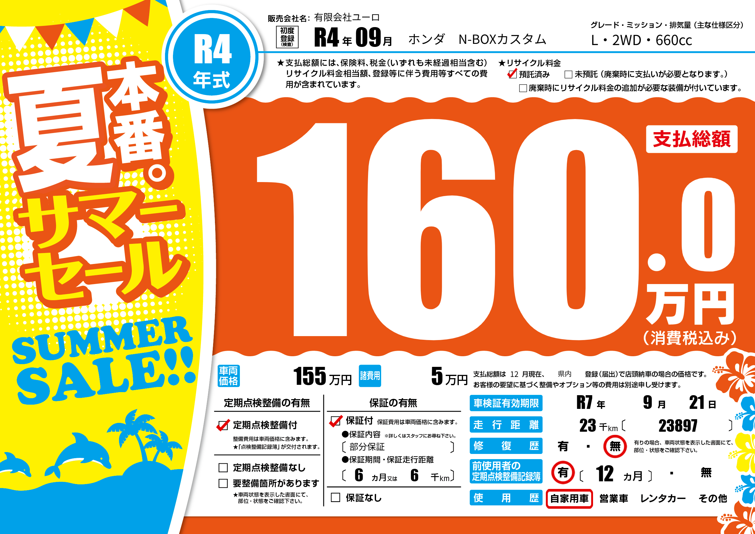 | 走行キロ | 2.3万km | 初年度登録 | R4年09月 |