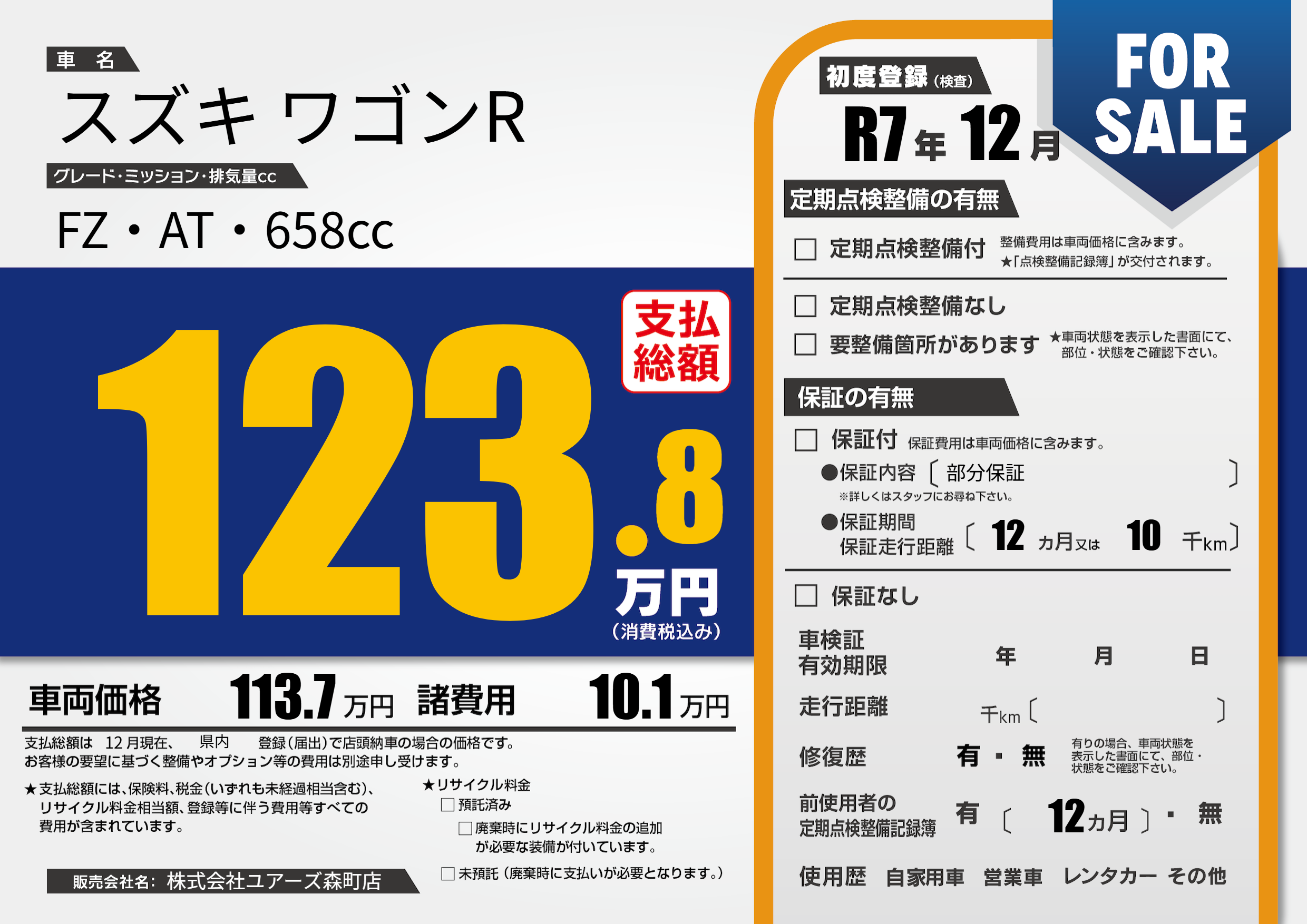 | 初年度登録 | R7年12月 | ||