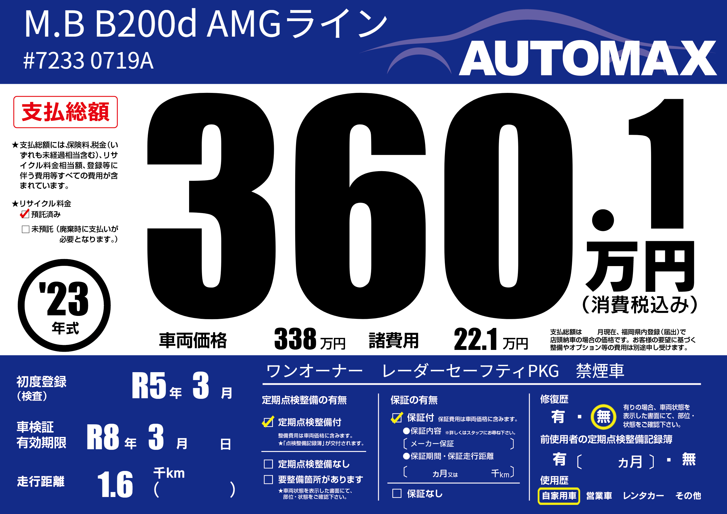 なし | 車検制限 | R8年3月---月 |