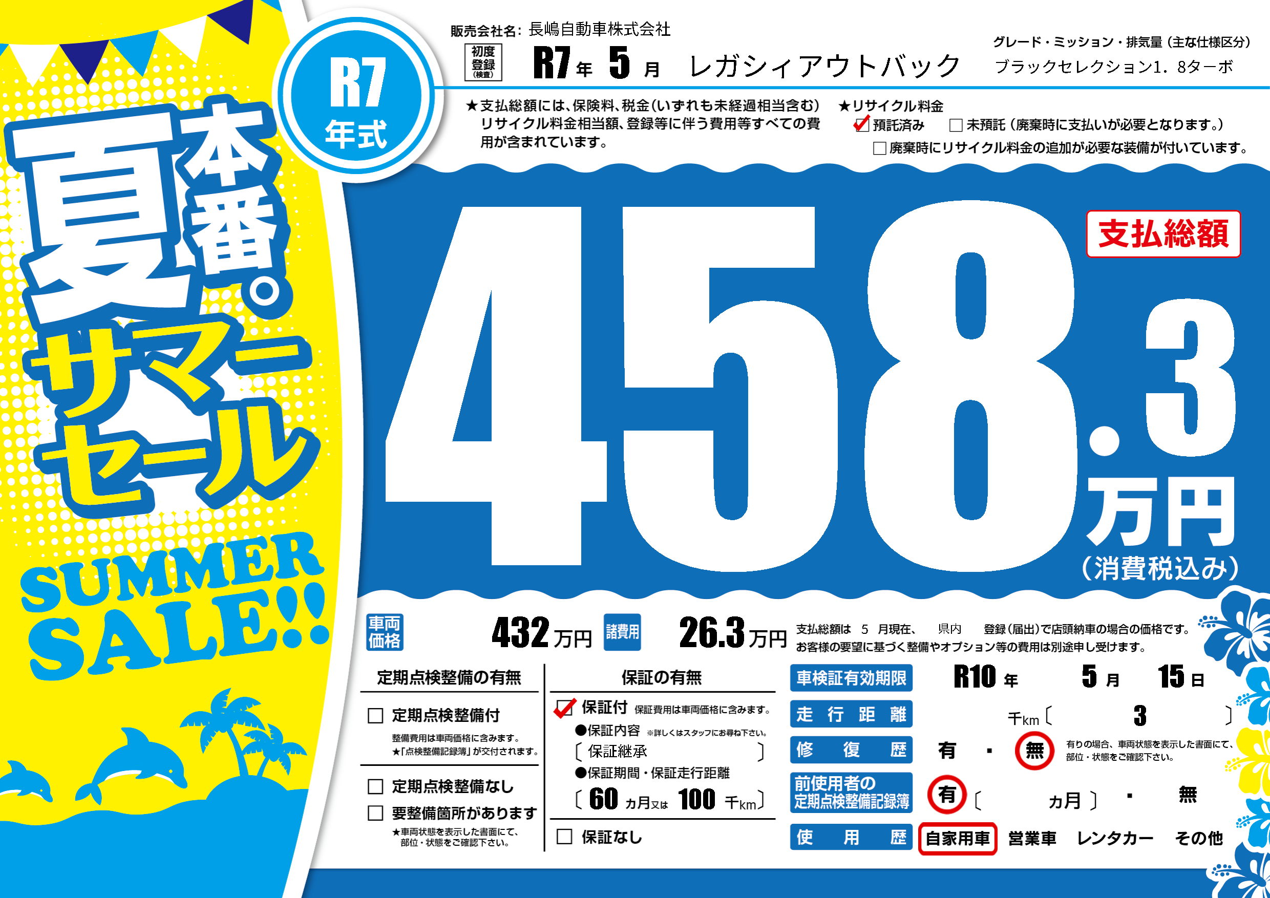 なし | 車検制限 | R10年5月15月 |