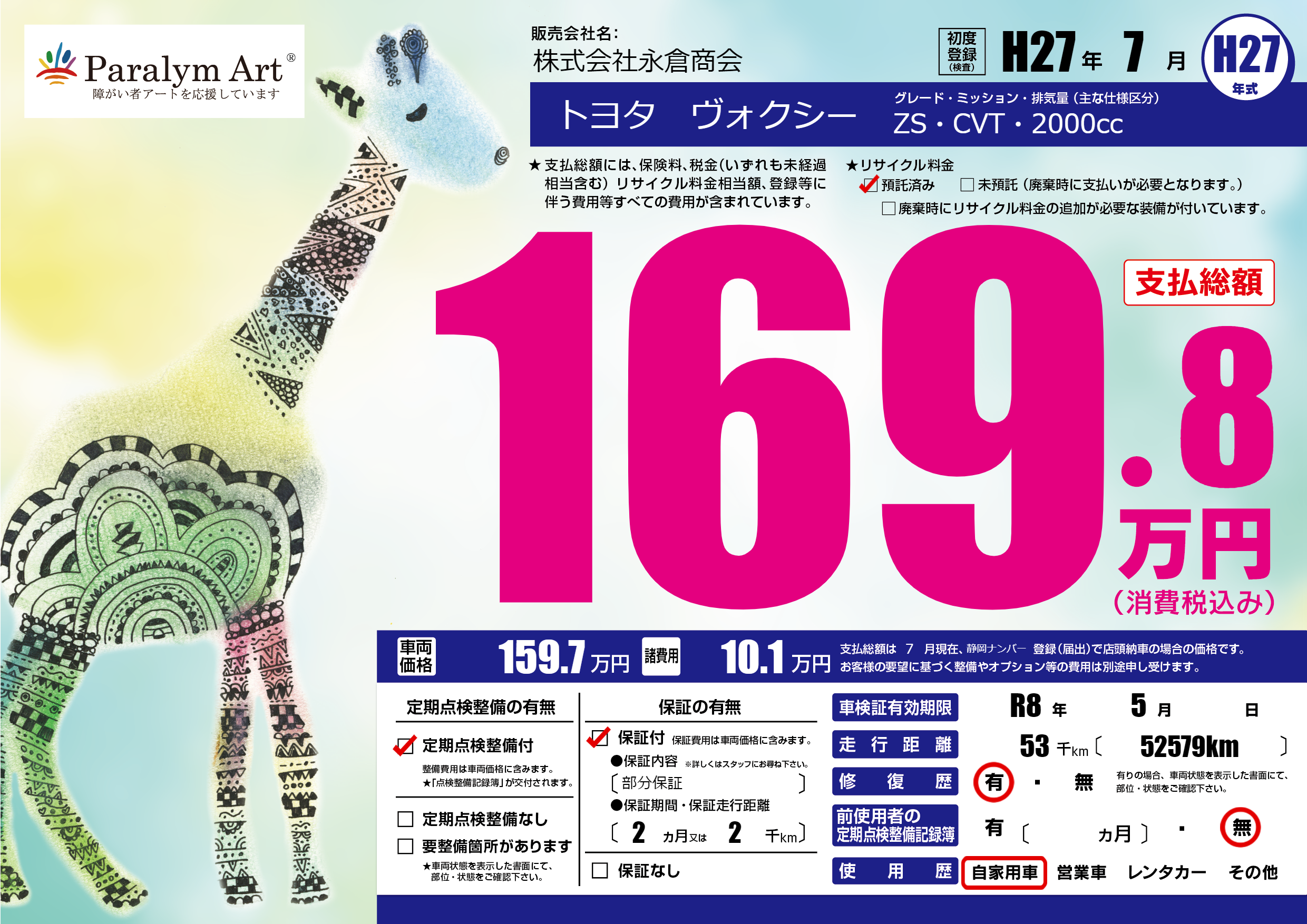 | 走行キロ | 5.3万km | 初年度登録 | H27年7月 |