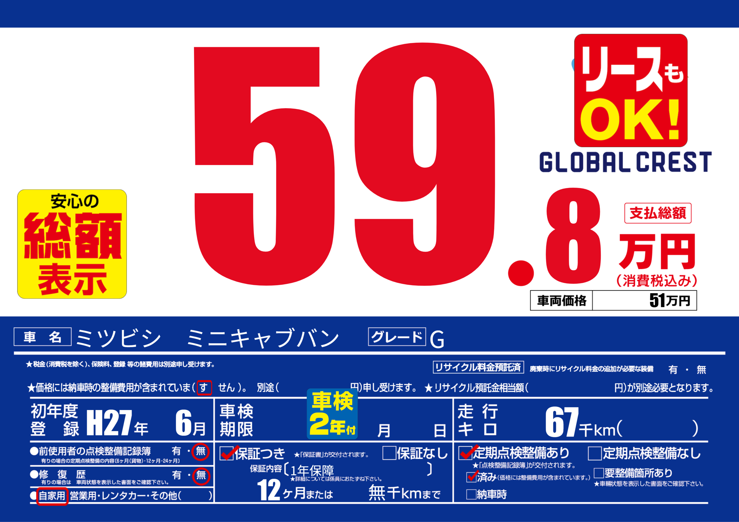 | 定期点検整備 | 定期点検整備あり 定期点検整備済み | ||