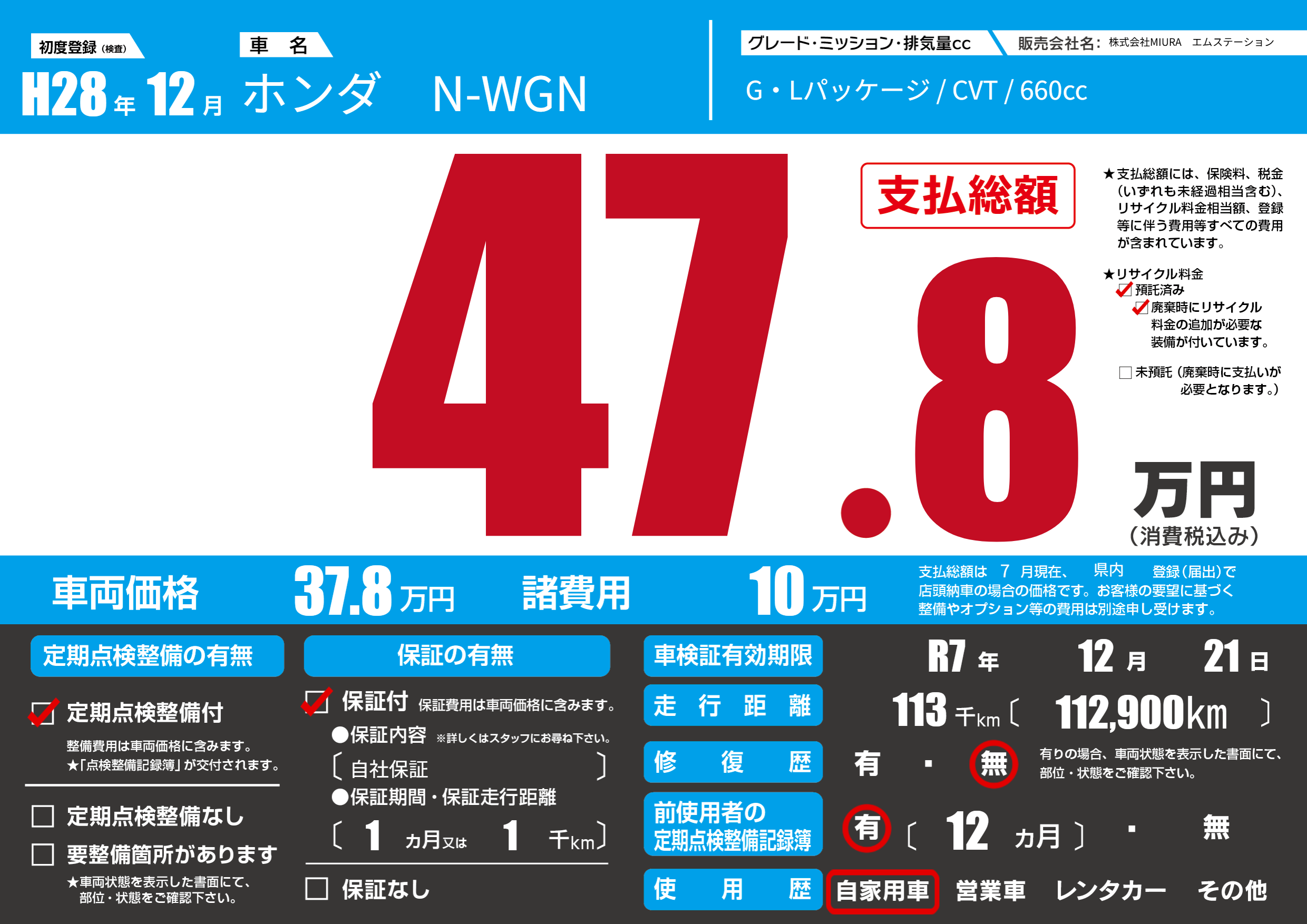 なし | 車検制限 | R7年12月21月 |