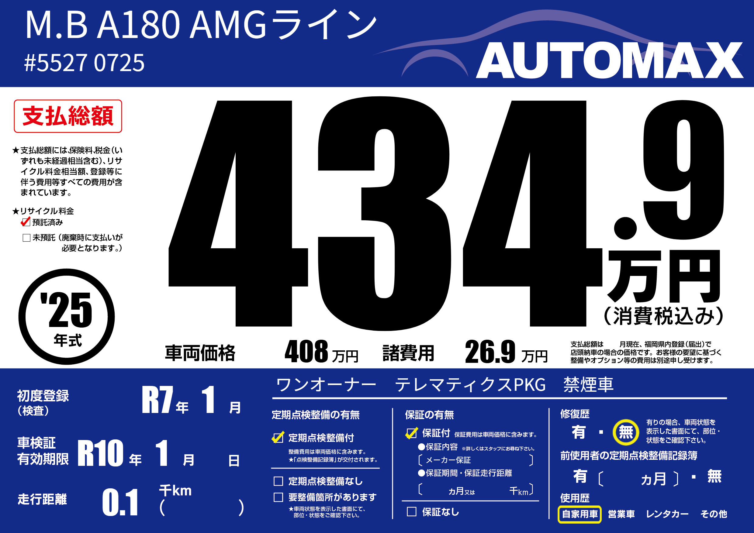 | 車検制限 | R10年 1月 - 日 | ||