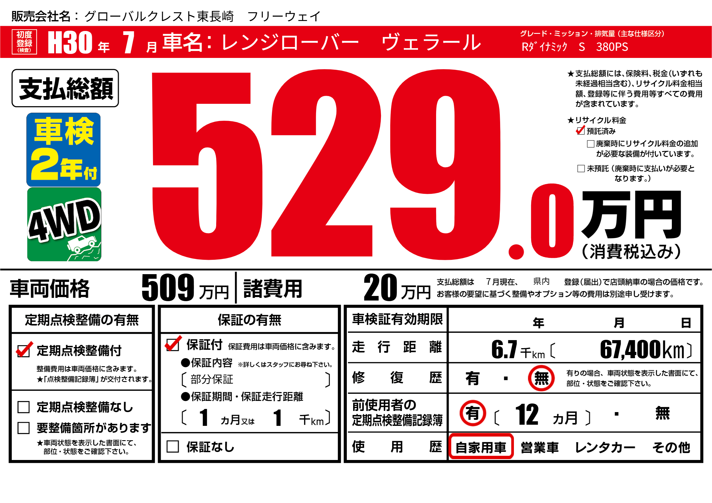 | 定期点検整備 | 定期点検整備あり | ||