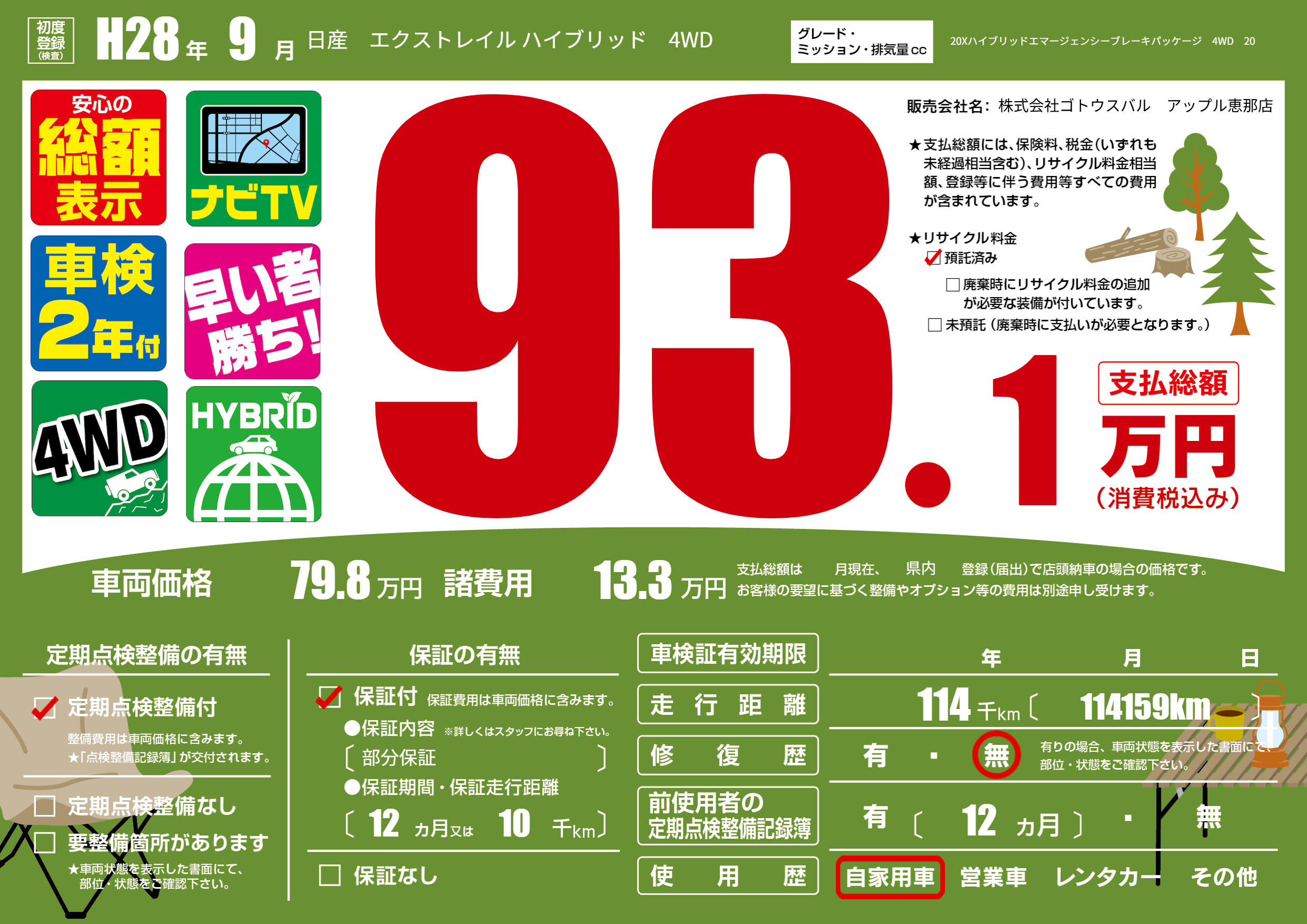 | 定期点検整備 | 定期点検整備あり | ||