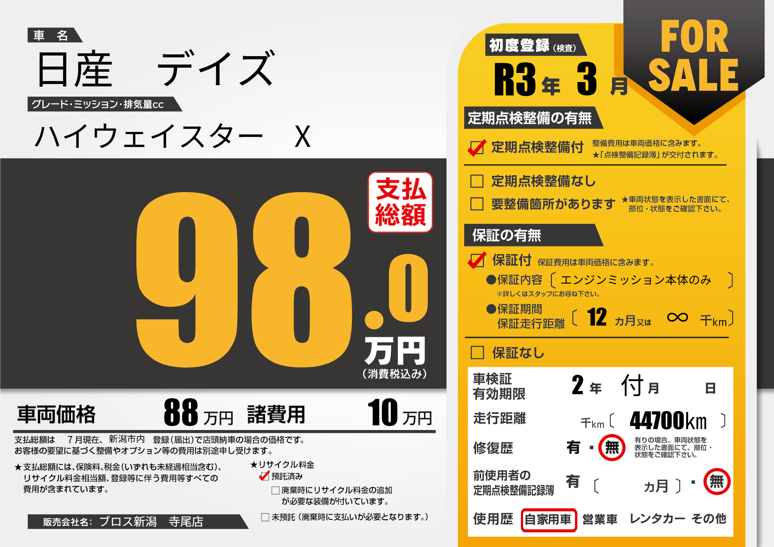 | 初年度登録 | R3年3月 | ||
