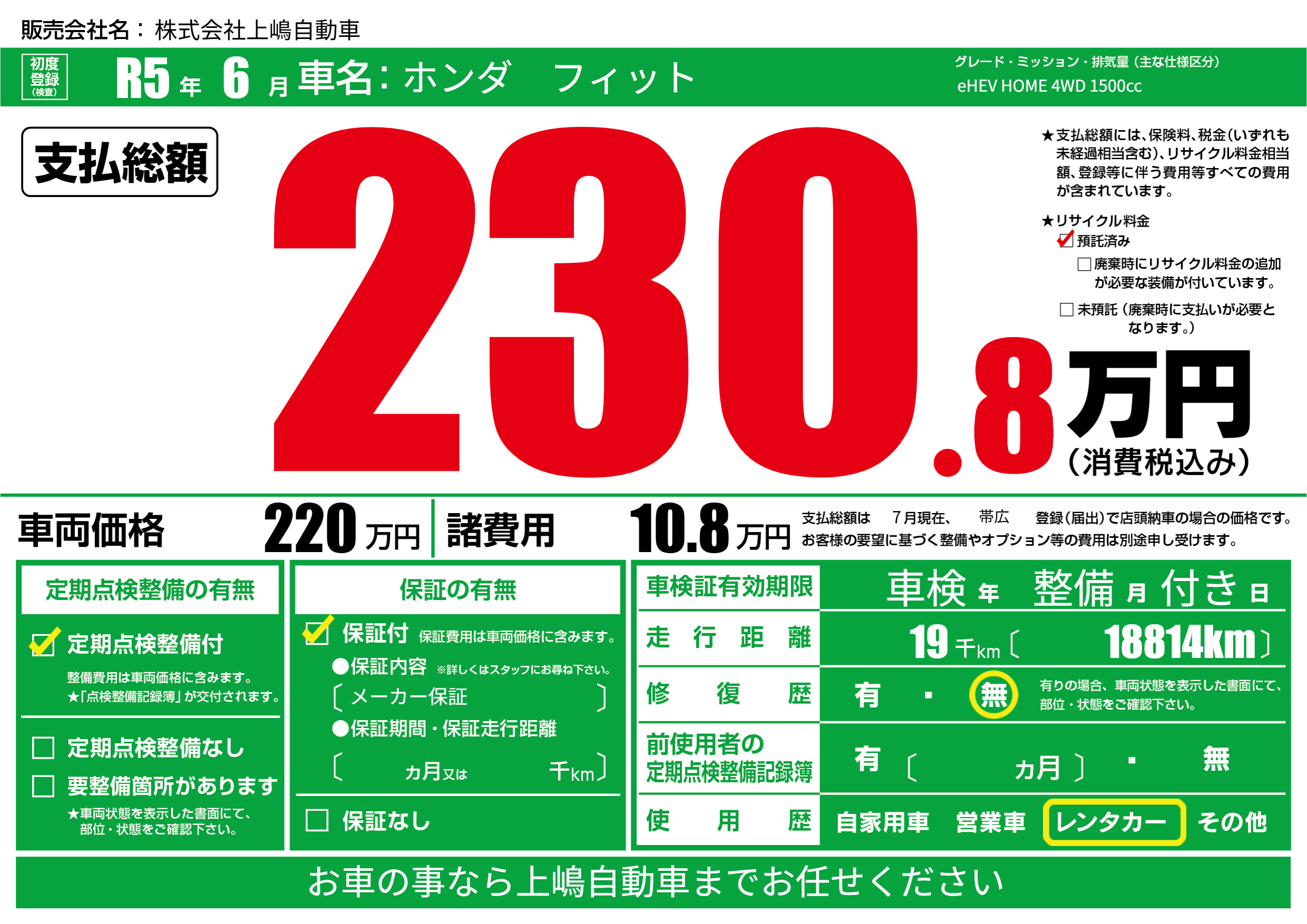 | 走行キロ | 1.9万km | 初年度登録 | R5年6月 |