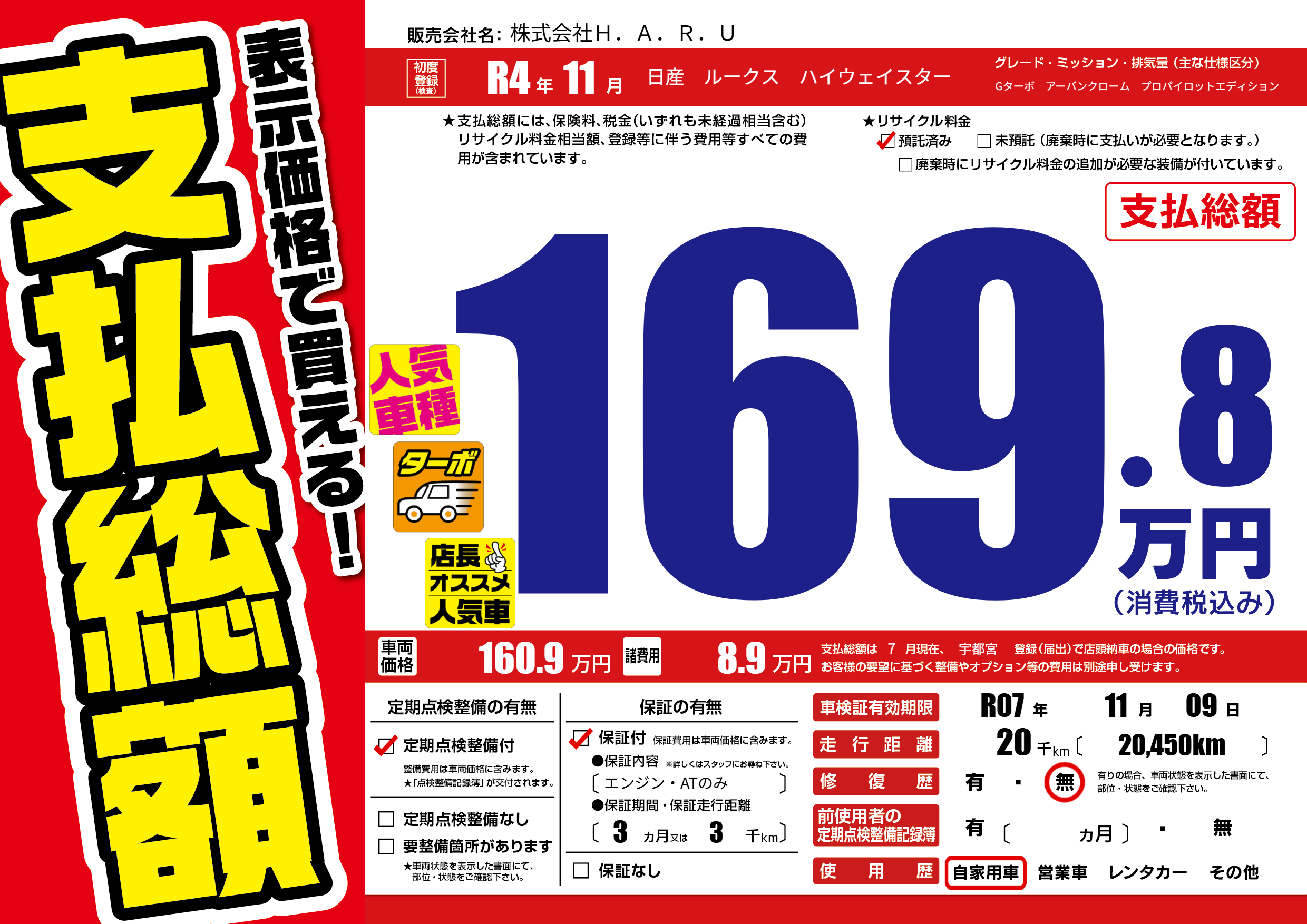 | 車検制限 | R07年 11月 09日 | ||