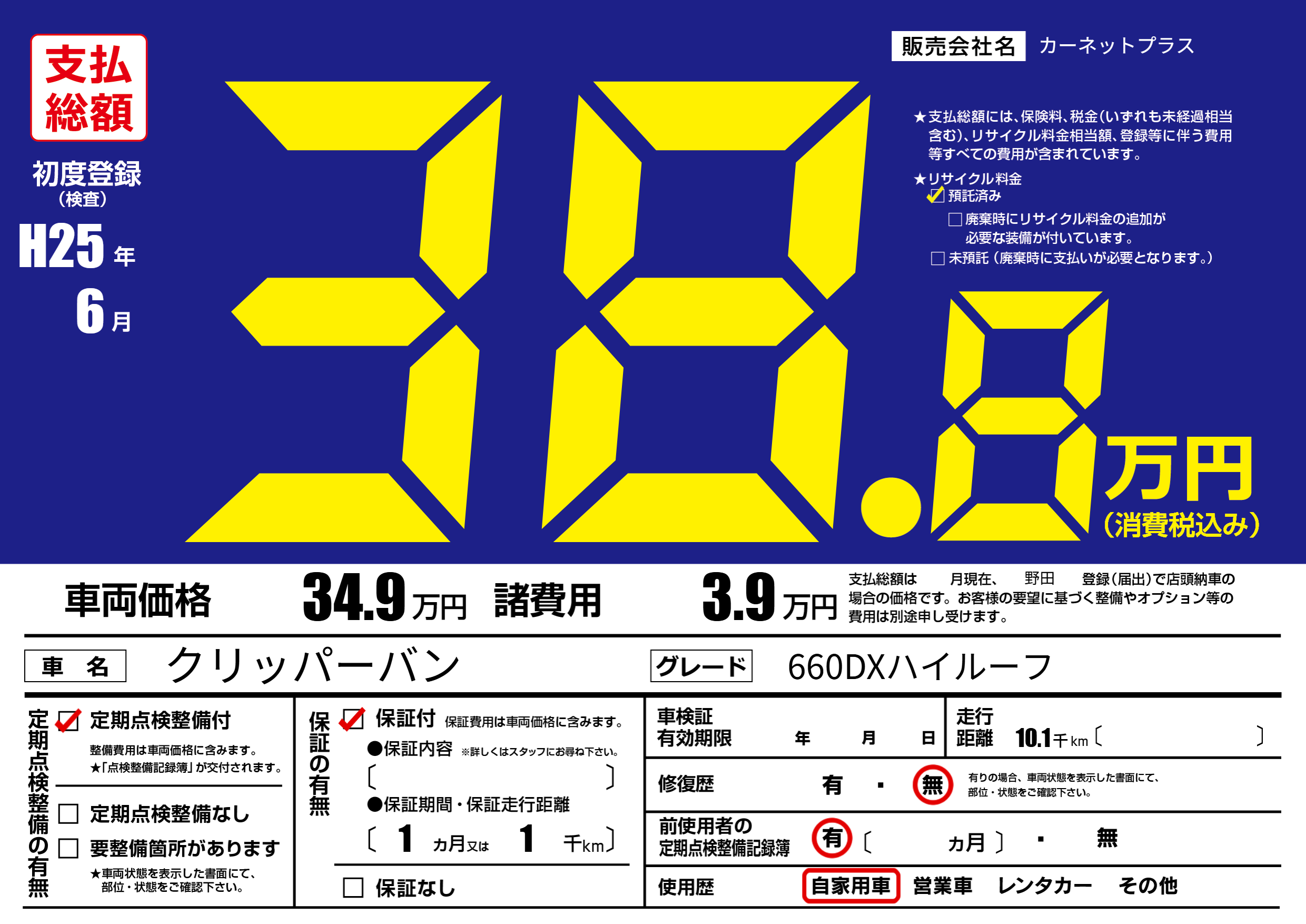 | 定期点検整備 | 定期点検整備あり | ||