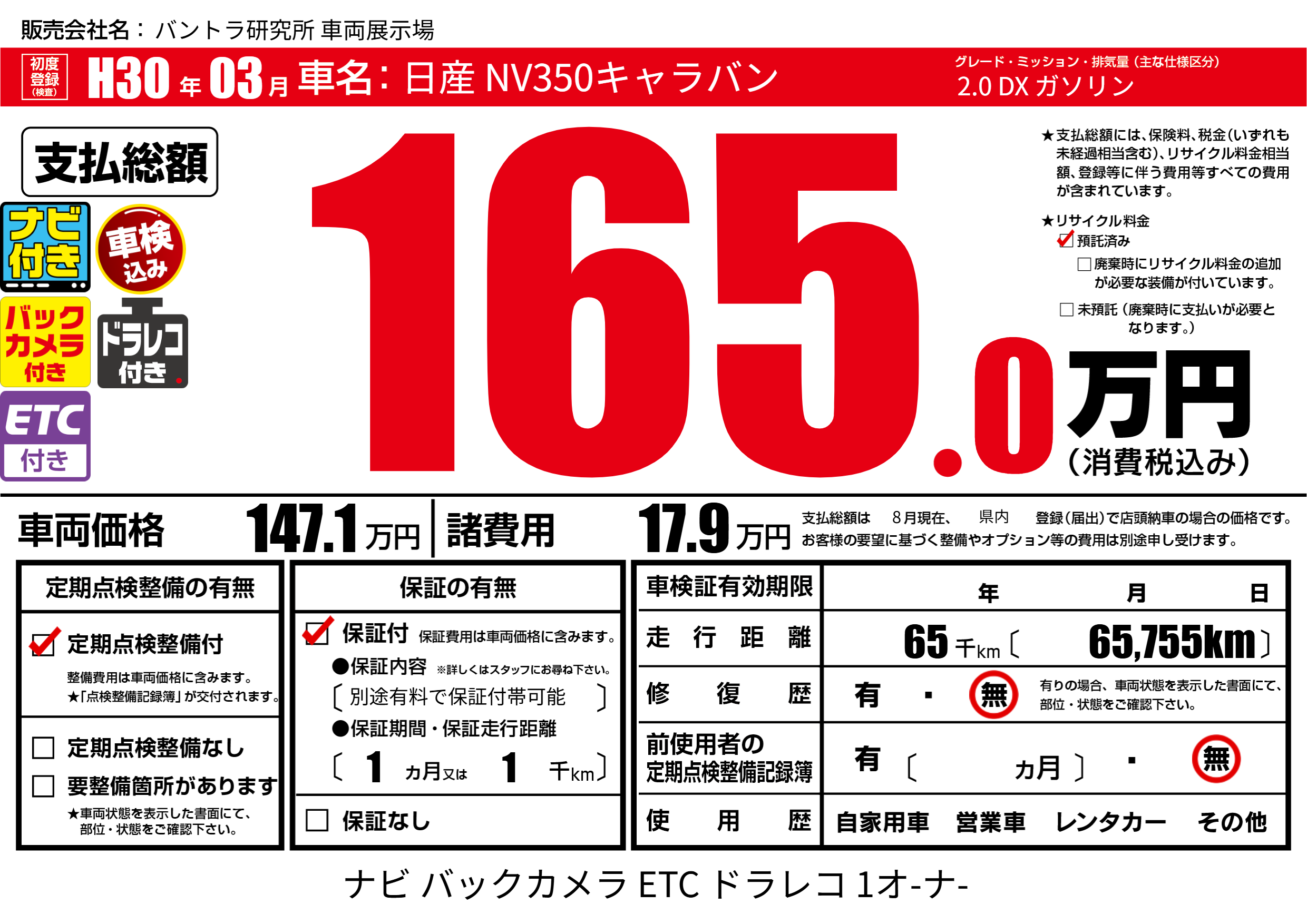 | 走行キロ | 6.5万km | ||