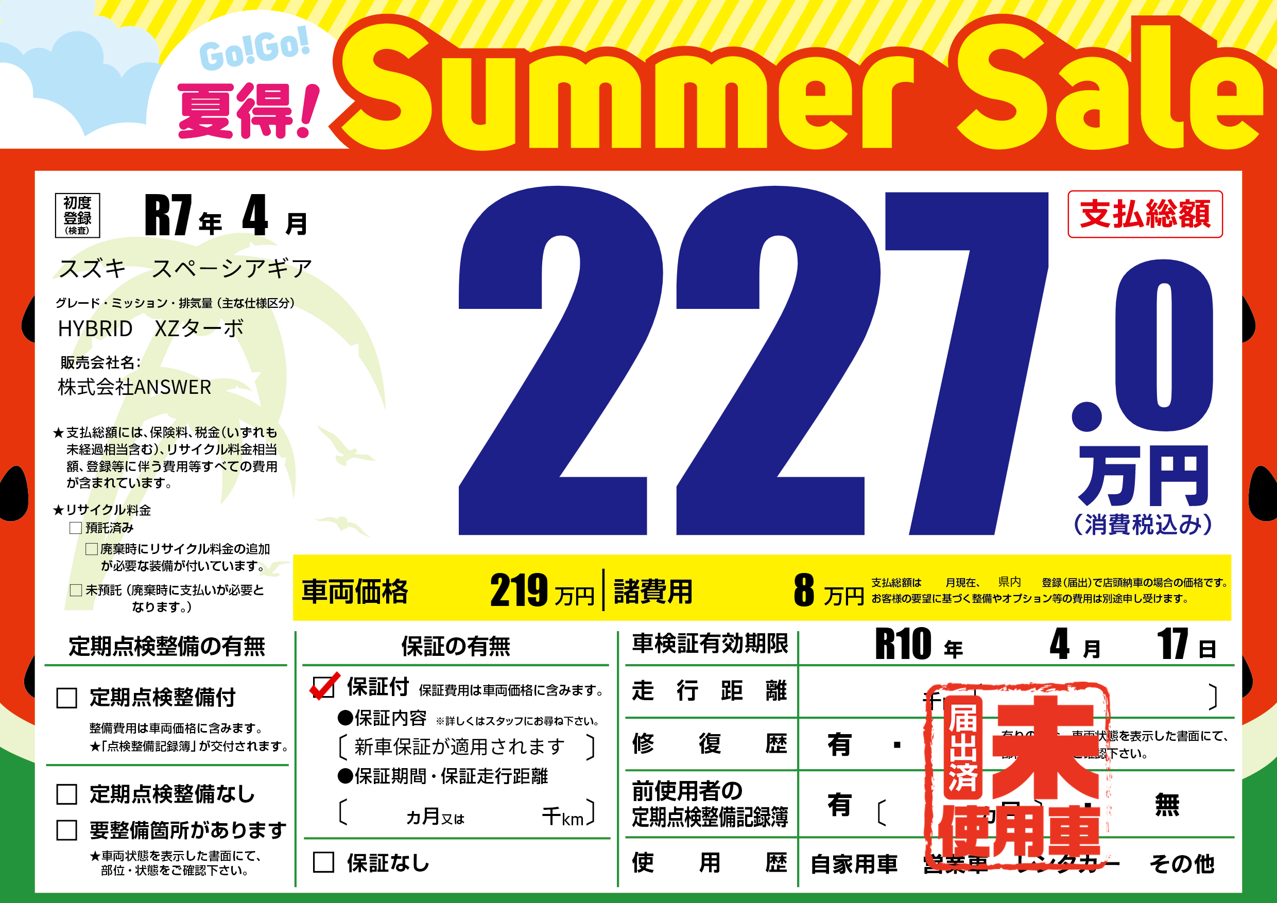 保証付き 保証内容(新車保証が適用されます) ---ヶ月または()千kmまで |