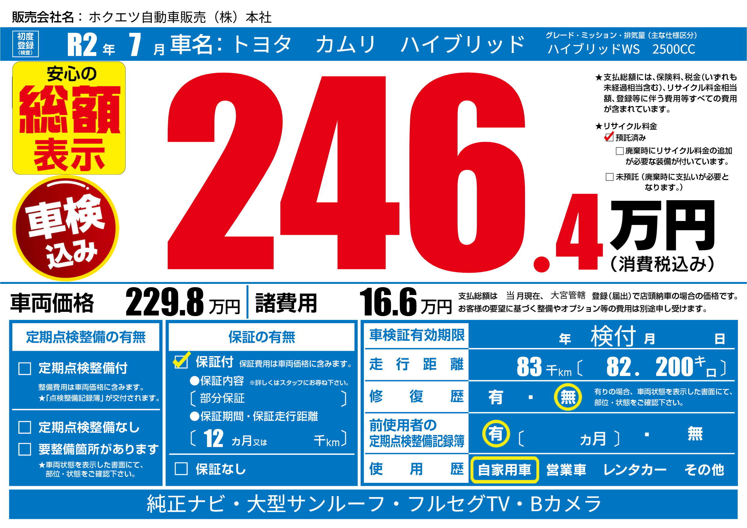 | 走行キロ | 8.3万km | ||