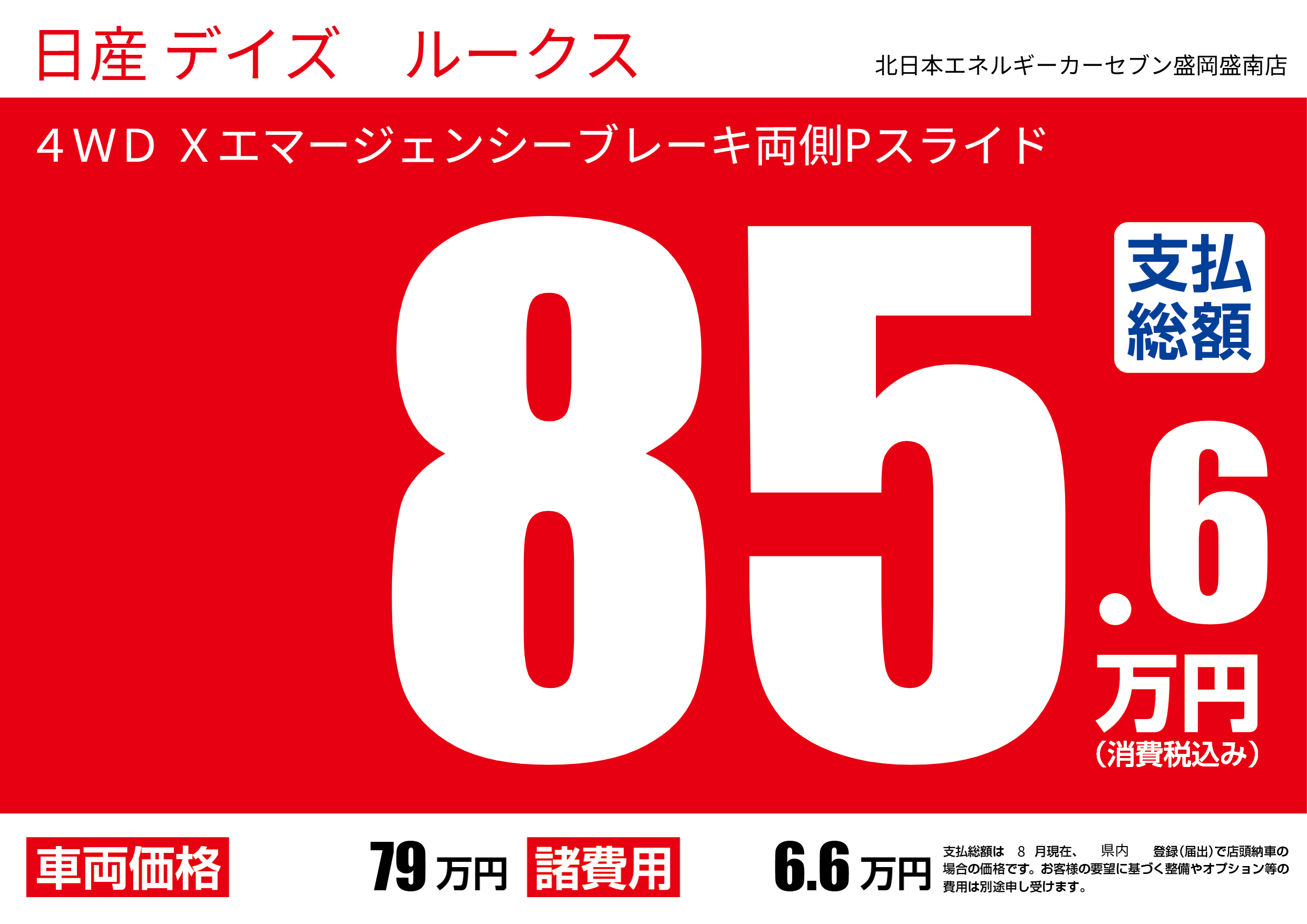 | 車名 | 日産 デイズ ルークス | グレード ミッション 排気量 |