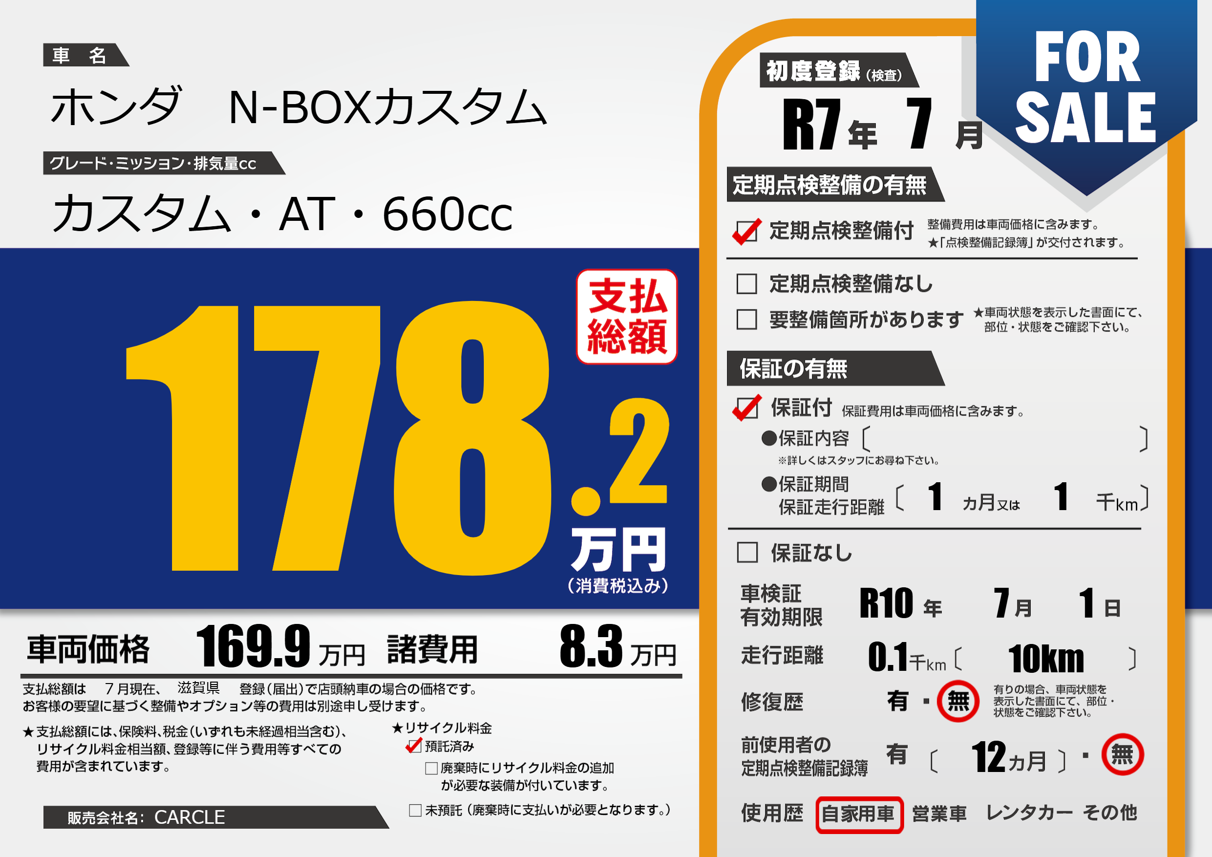 | 走行キロ | - | 初年度登録 | R7年7月 |
