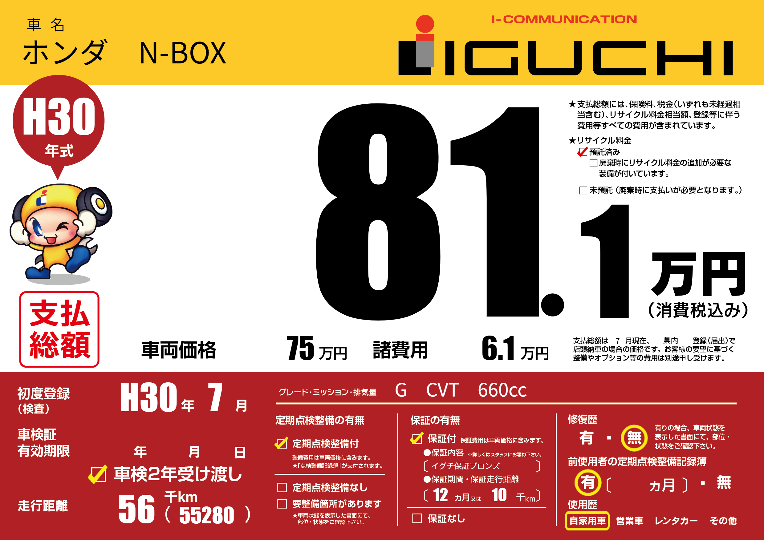 保証付き 保証内容(イグチ保証ブロンズ) 12ヶ月または(10)千kmまで |