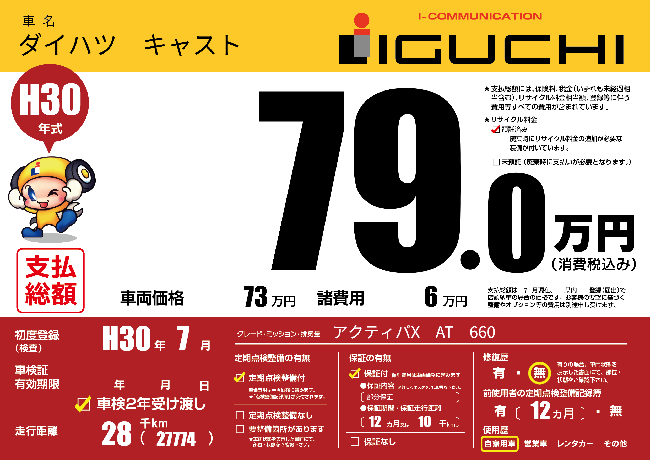 | 定期点検整備 | 定期点検整備あり | ||