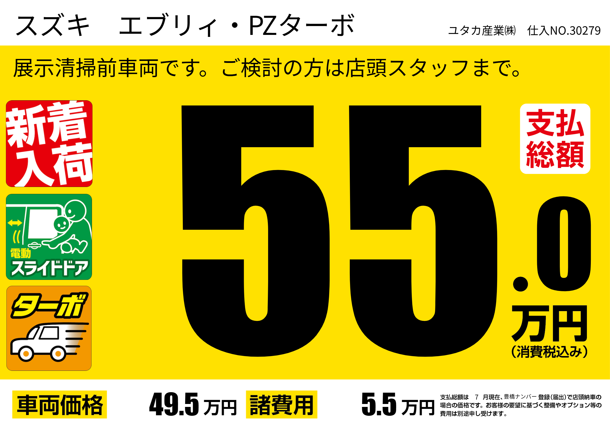 | 車名 | スズキ エブリィ・PZターボ | グレード ミッション 排気量 |