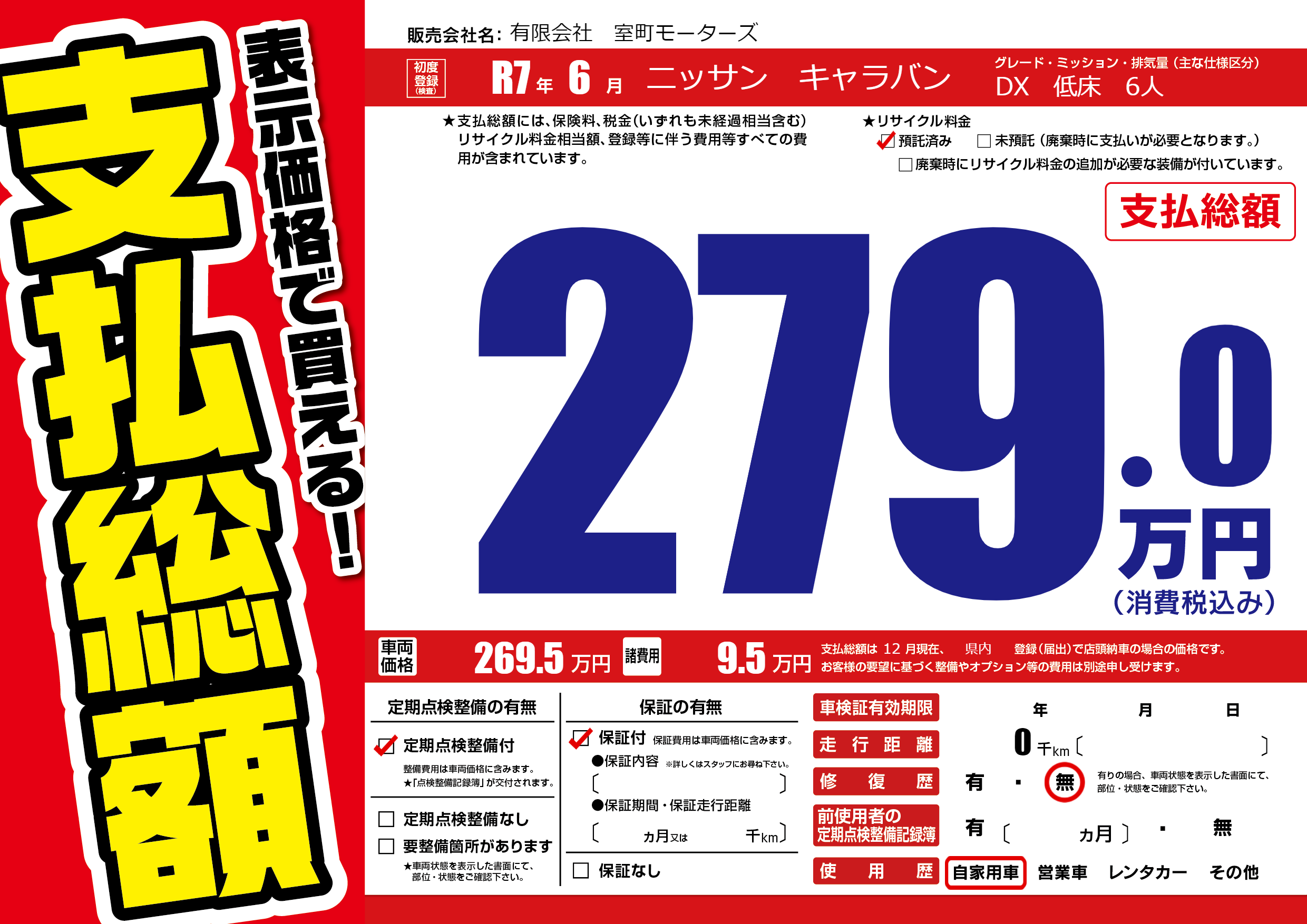 | 車名 | ニッサン キャラバン | グレード ミッション 排気量 |