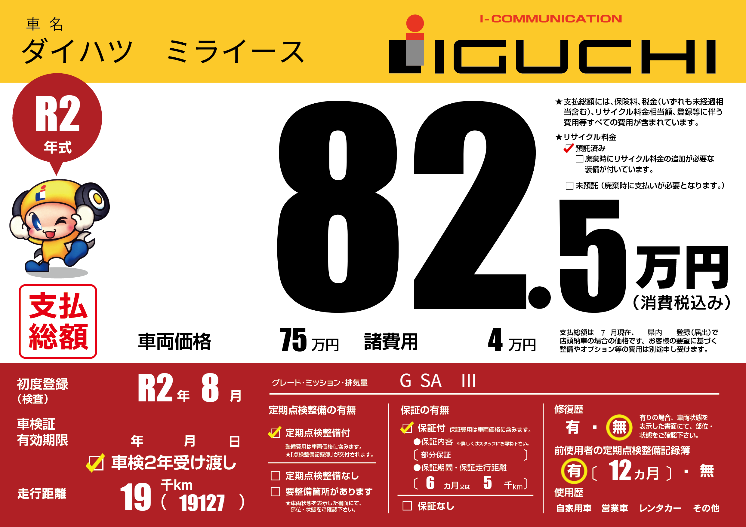 | 定期点検整備 | 定期点検整備あり | ||