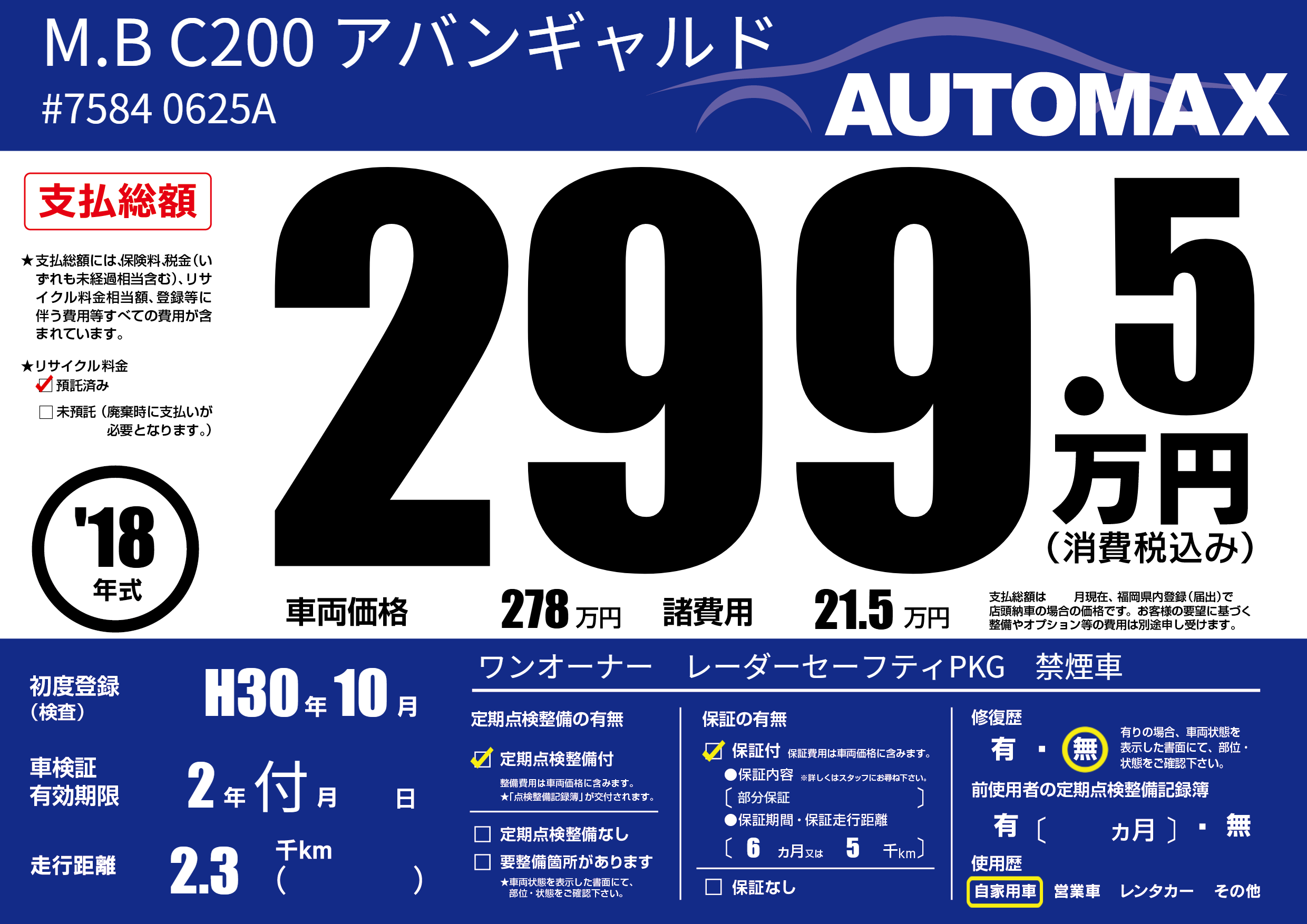 | 車名 | M.B C200 アバンギャルド | グレード ミッション 排気量 |