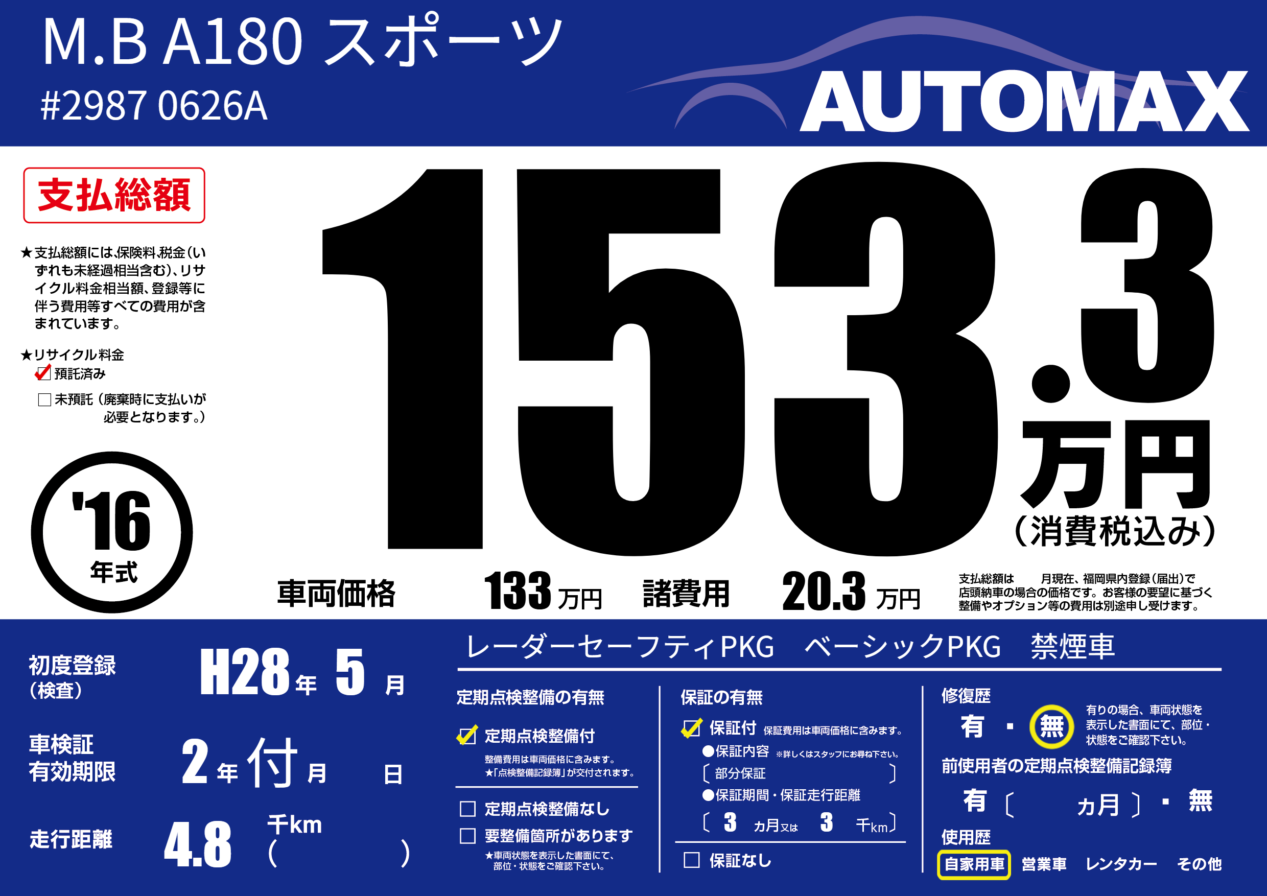 なし | 車検制限 | 2年付月---月 |