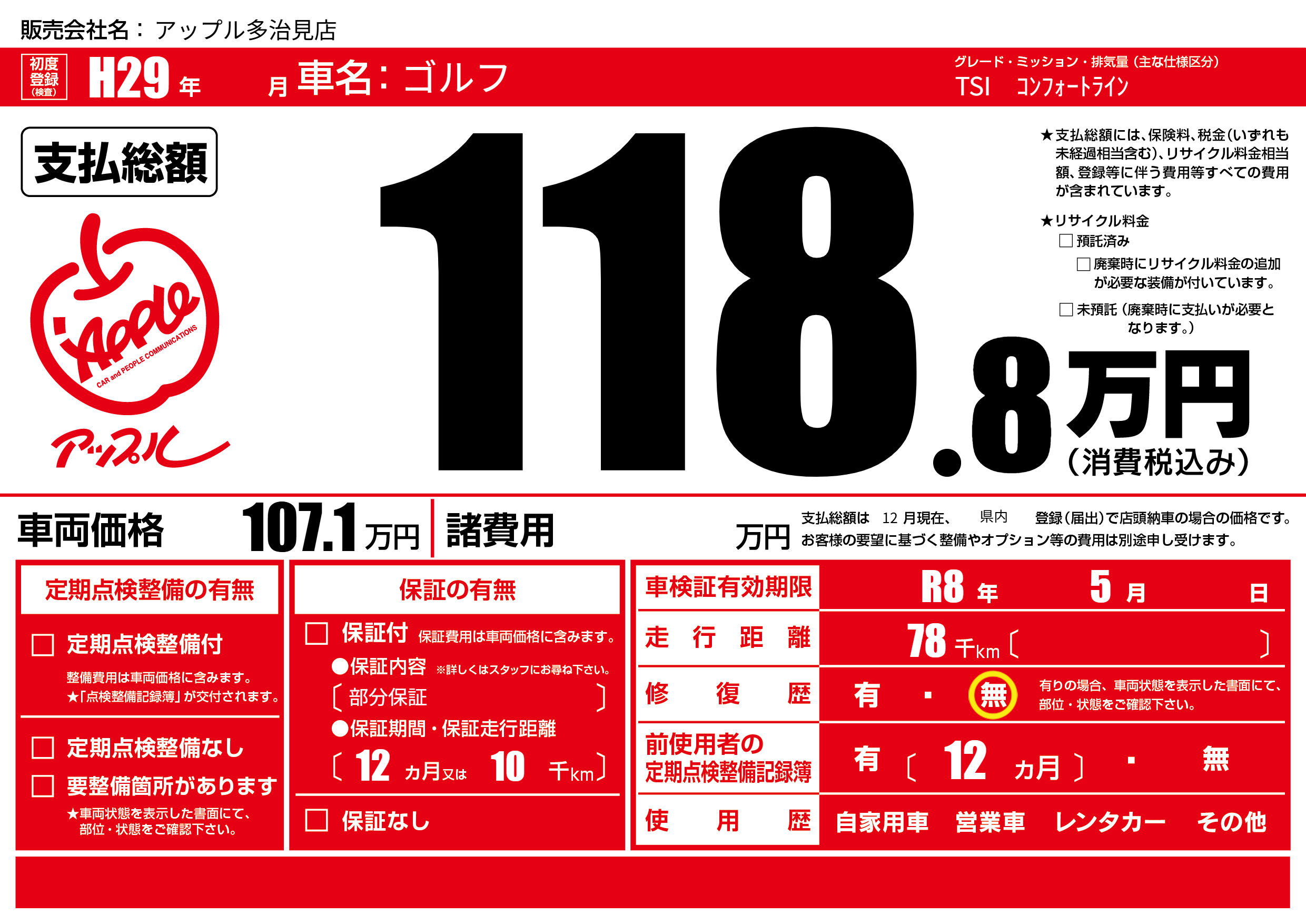なし | 車検制限 | R8年5月---月 |