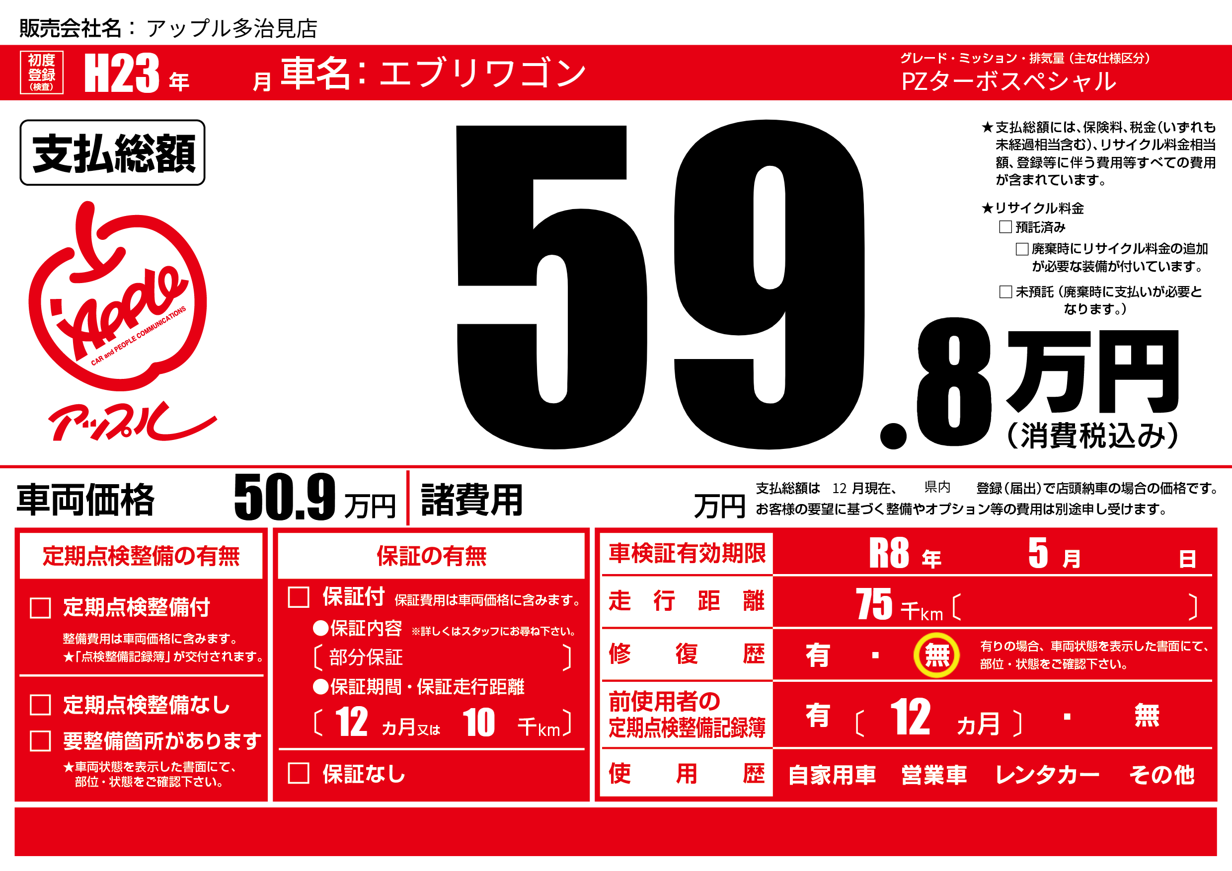 | 車名 | エブリワゴン | グレード ミッション 排気量 |