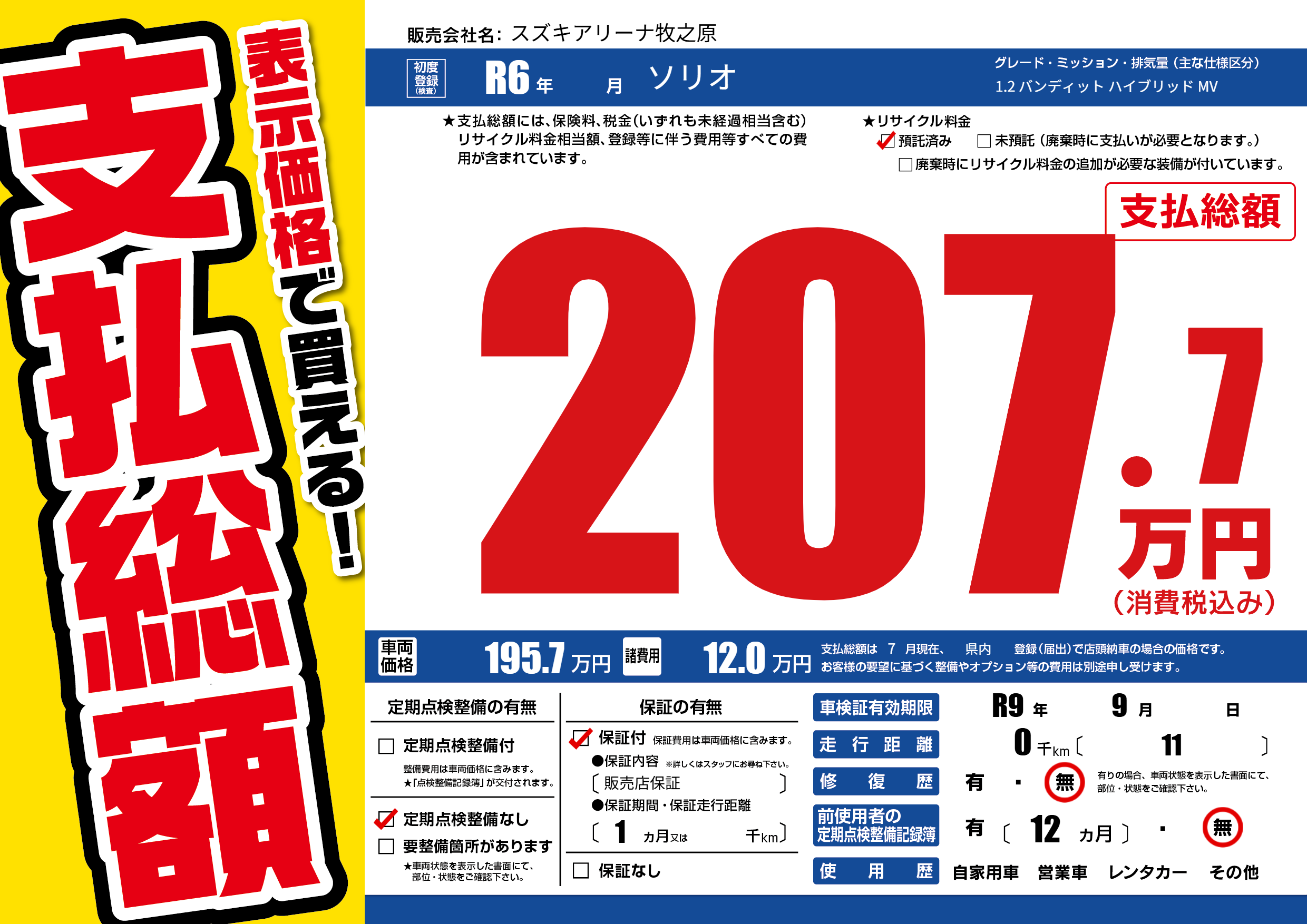 | 車名 | ソリオ | グレード ミッション 排気量 |