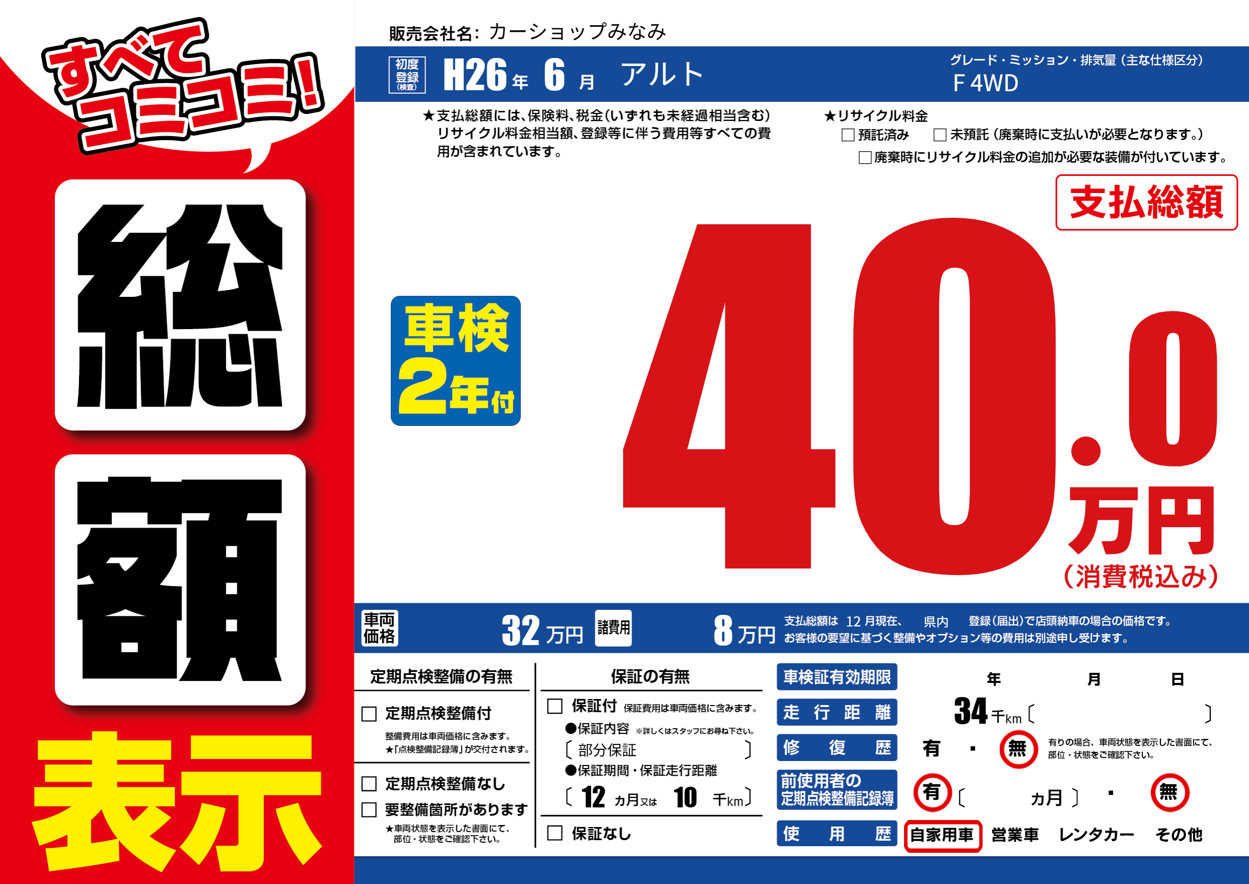 | 走行キロ | 3.4万km | 初年度登録 | H26年6月 |