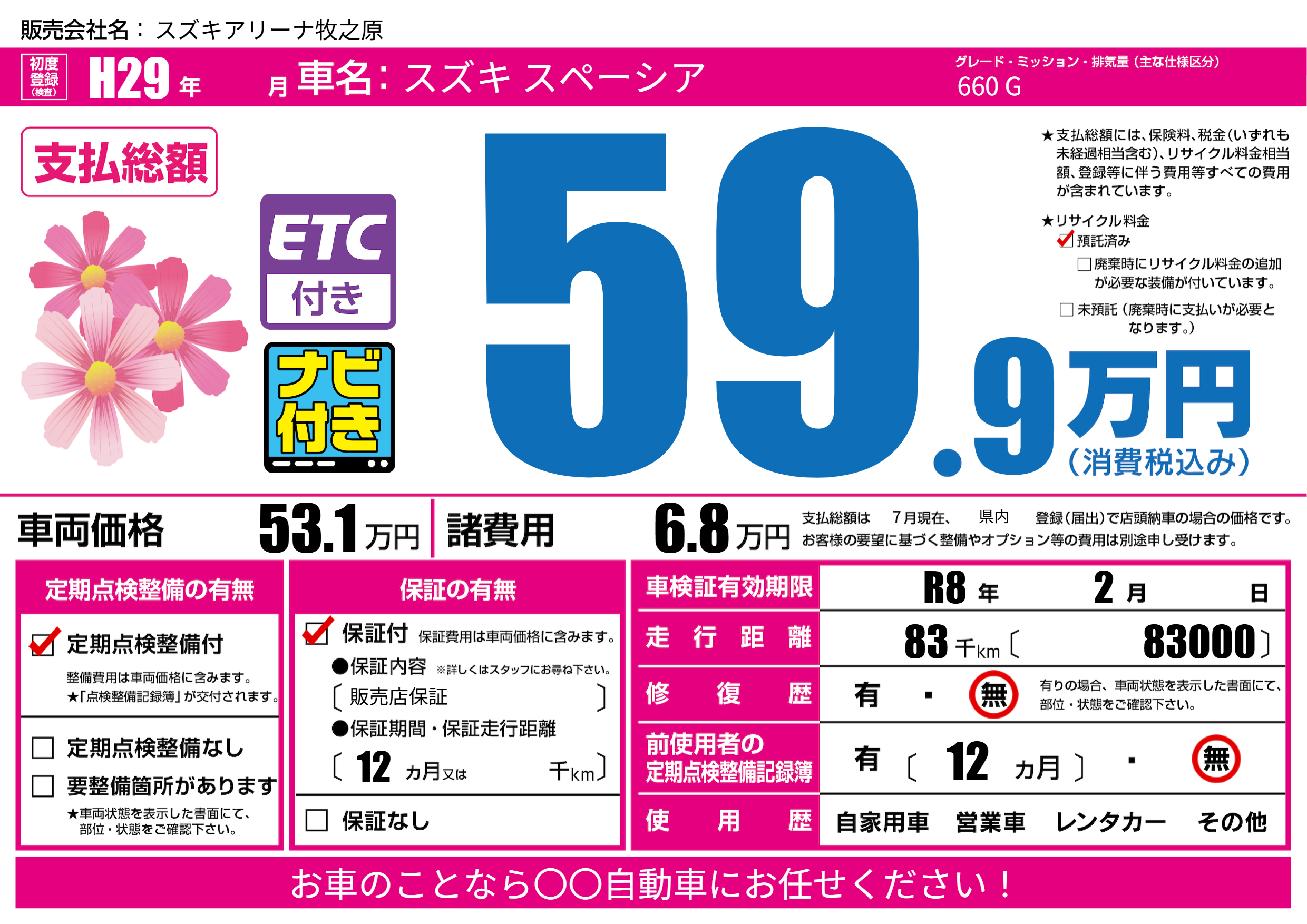 なし | 車検制限 | R8年2月---月 |