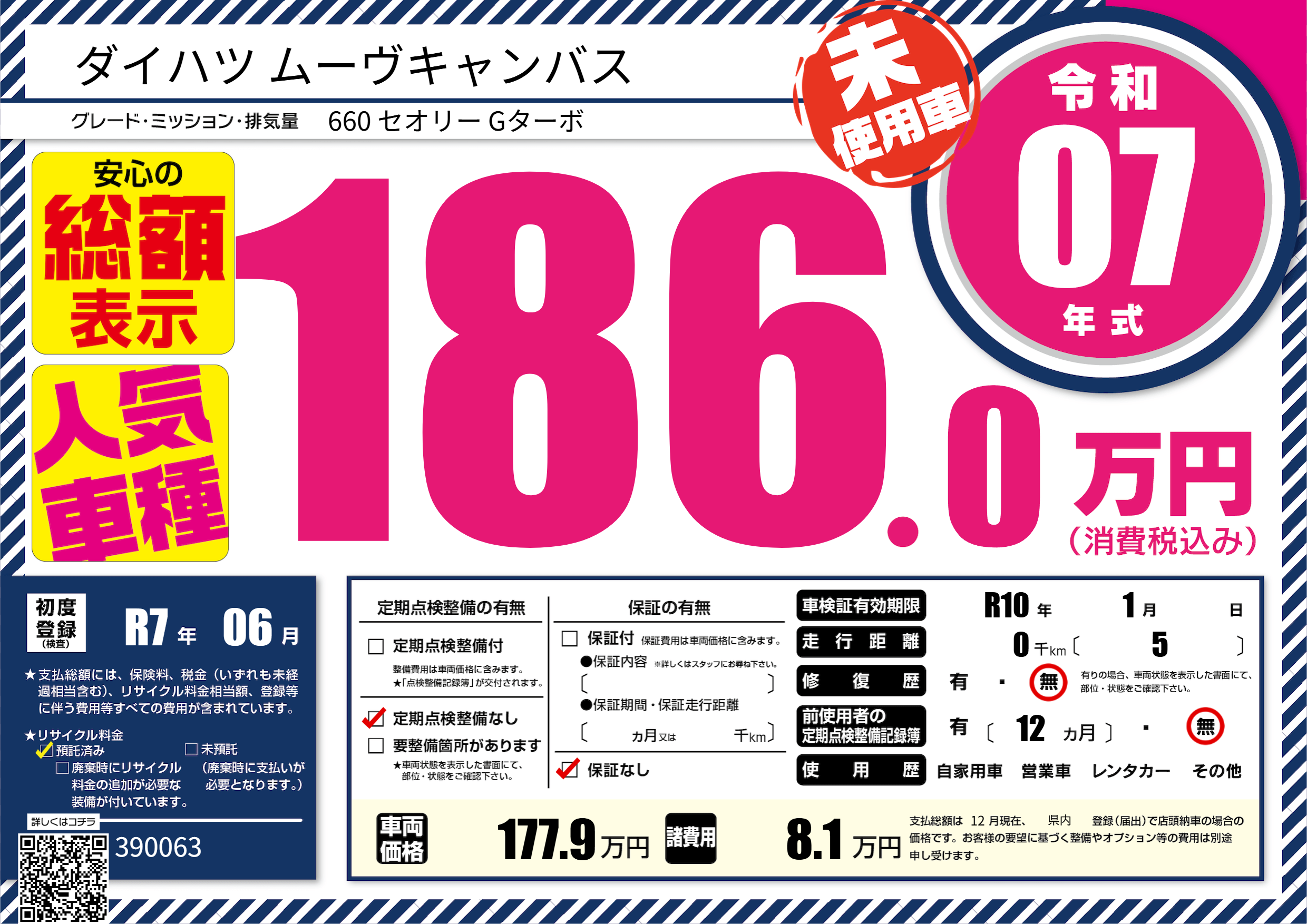 | 走行キロ | - | 初年度登録 | R7年06月 |