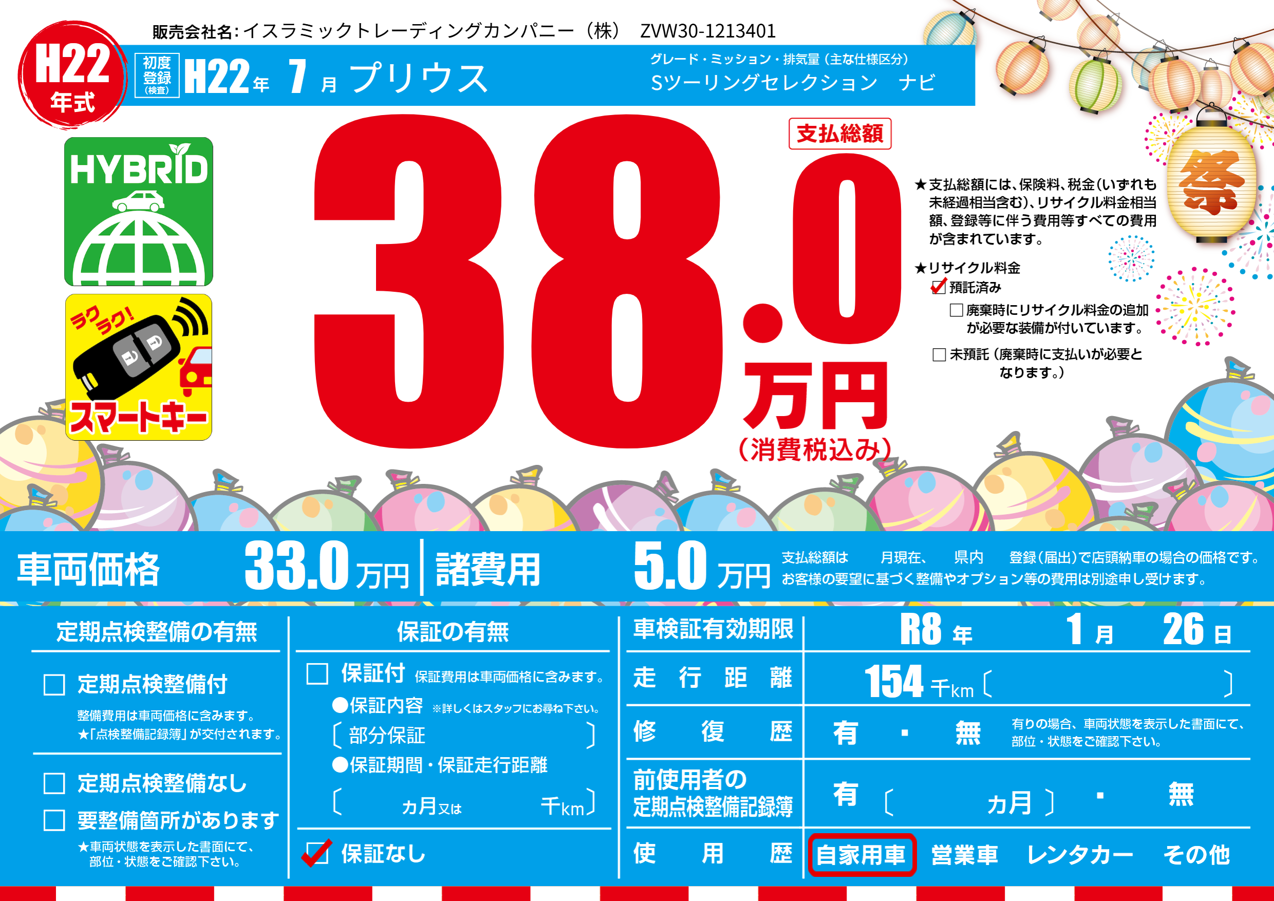 なし | 車検制限 | R8年1月26月 |