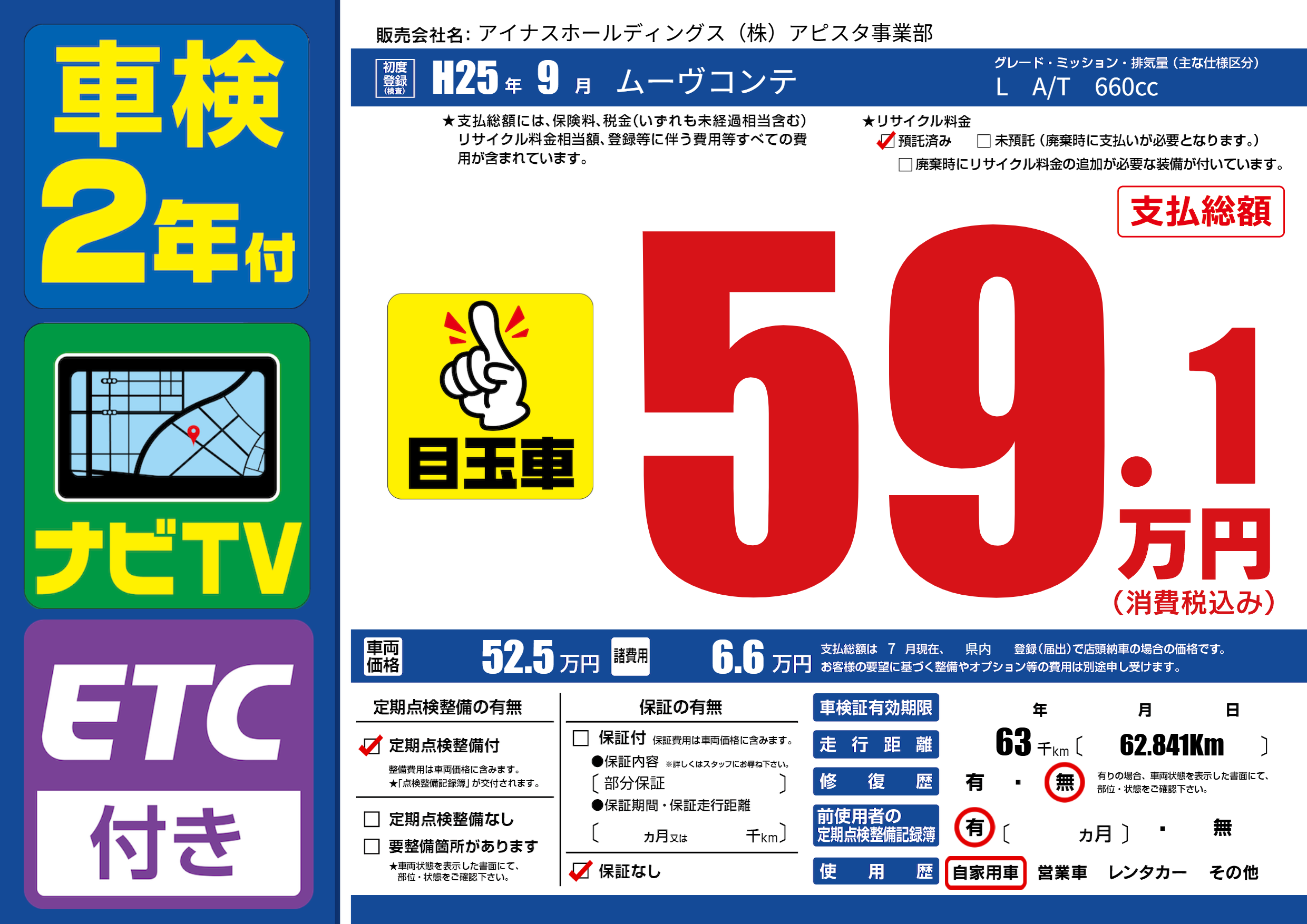 | 定期点検整備 | 定期点検整備あり | ||