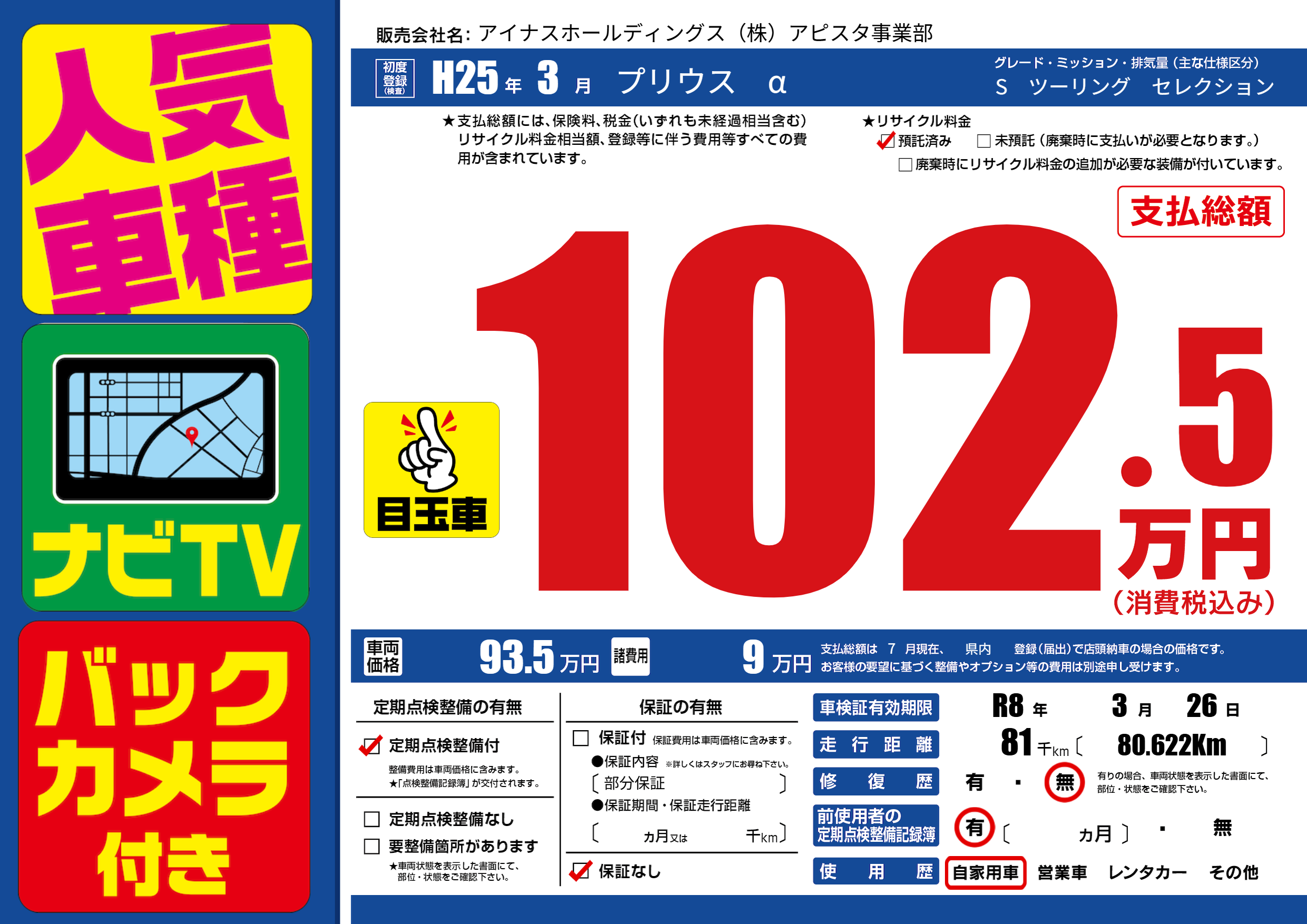 なし | 車検制限 | R8年3月26月 |