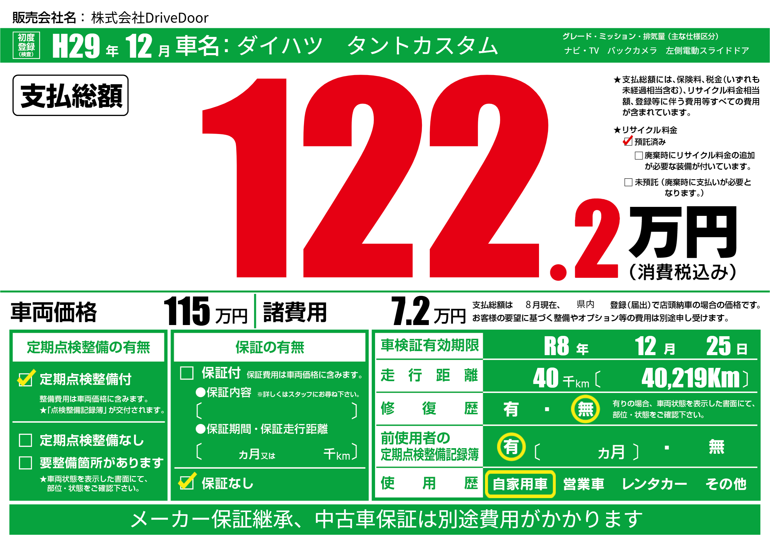 車検制限 R8年 12月 25日