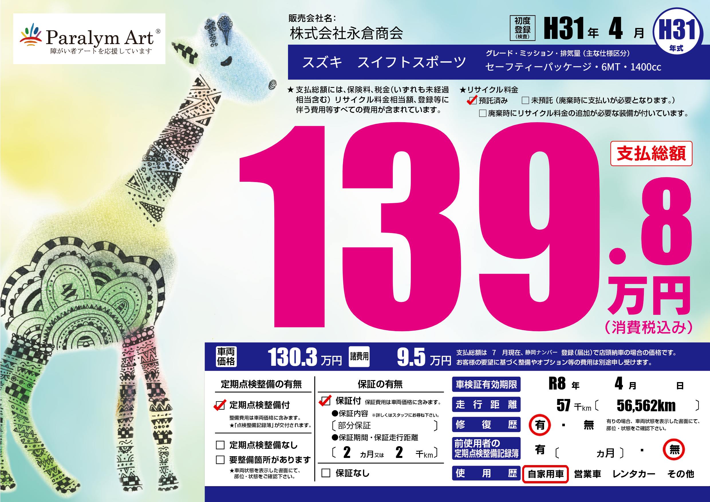 | 車検制限 | R8年 4月 - 日 | ||