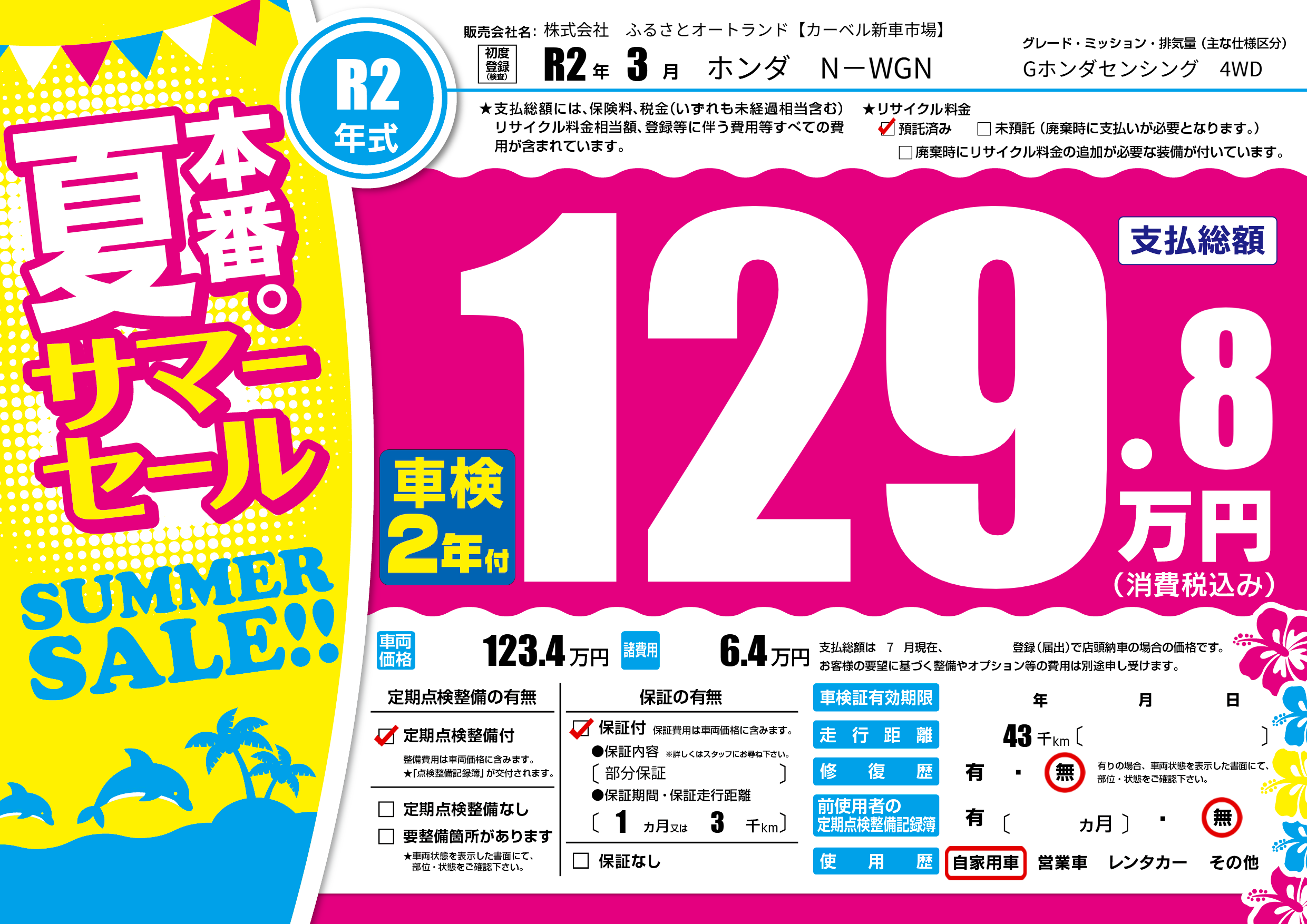 | 車名 | ホンダ N-WGN | グレード ミッション 排気量 |