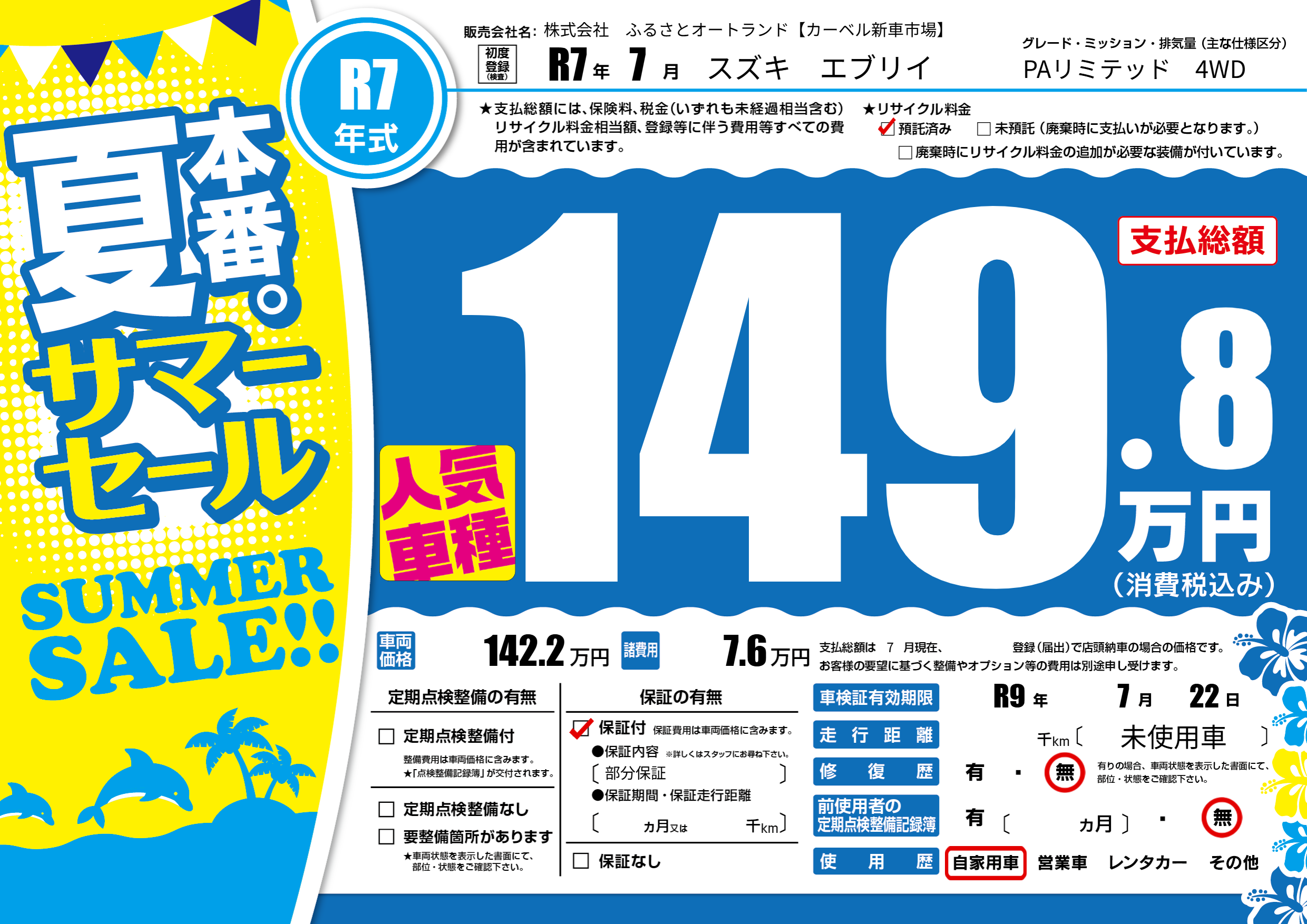 | 走行キロ | - | 初年度登録 | R7年7月 |