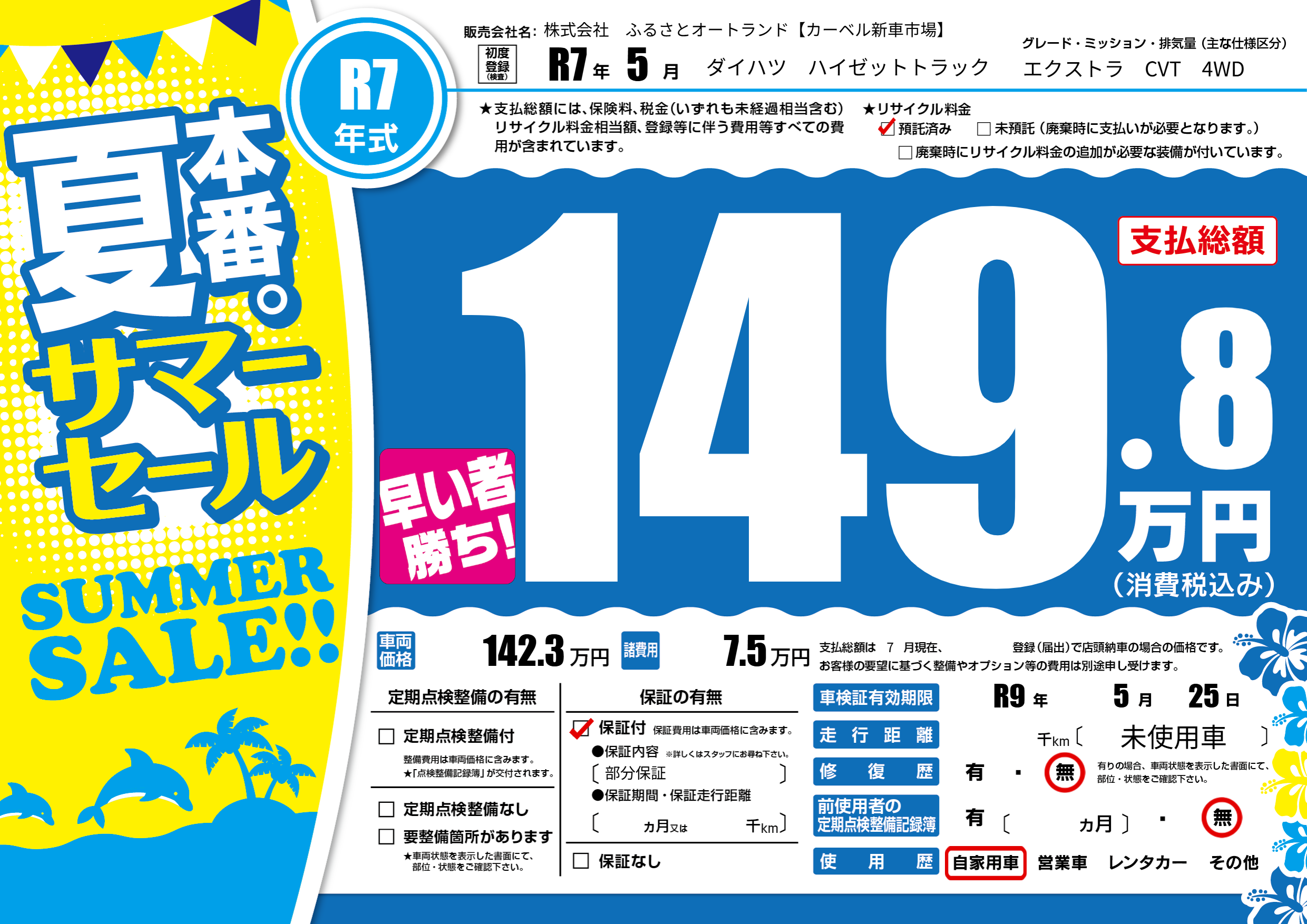 | 走行キロ | - | 初年度登録 | R7年5月 |