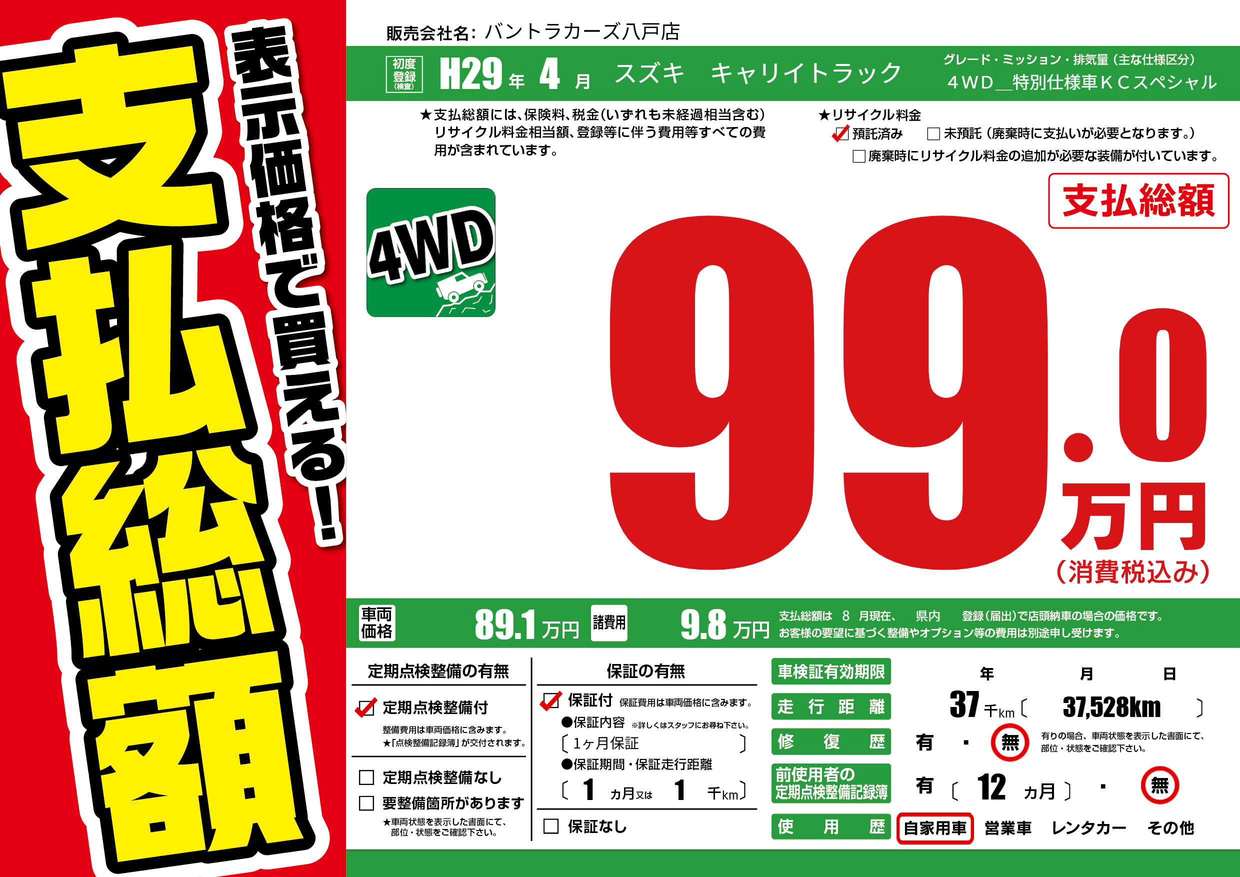 保証付き 保証内容(1ヶ月保証) 1ヶ月または(1)千kmまで |