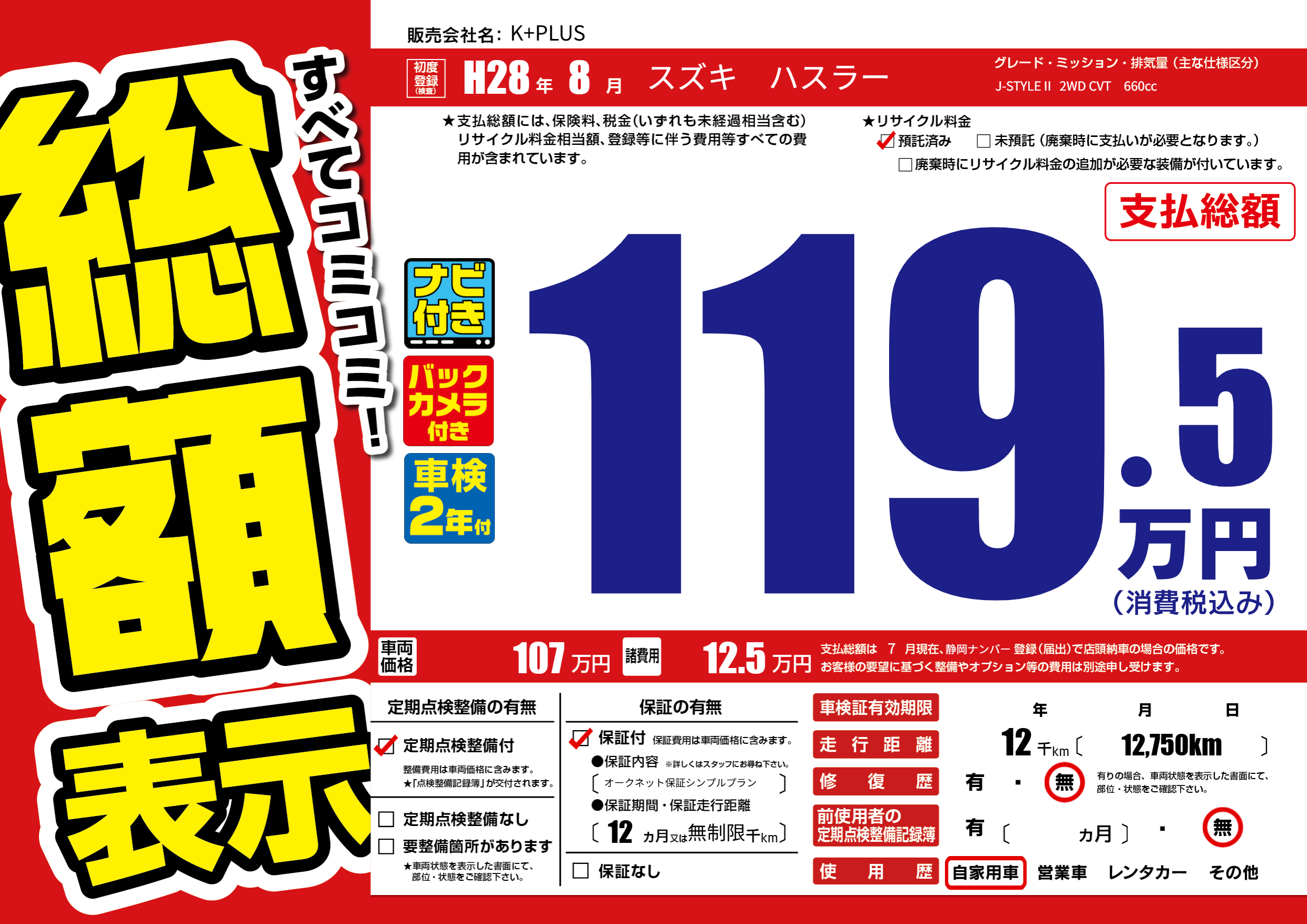 | 定期点検整備 | 定期点検整備あり | ||