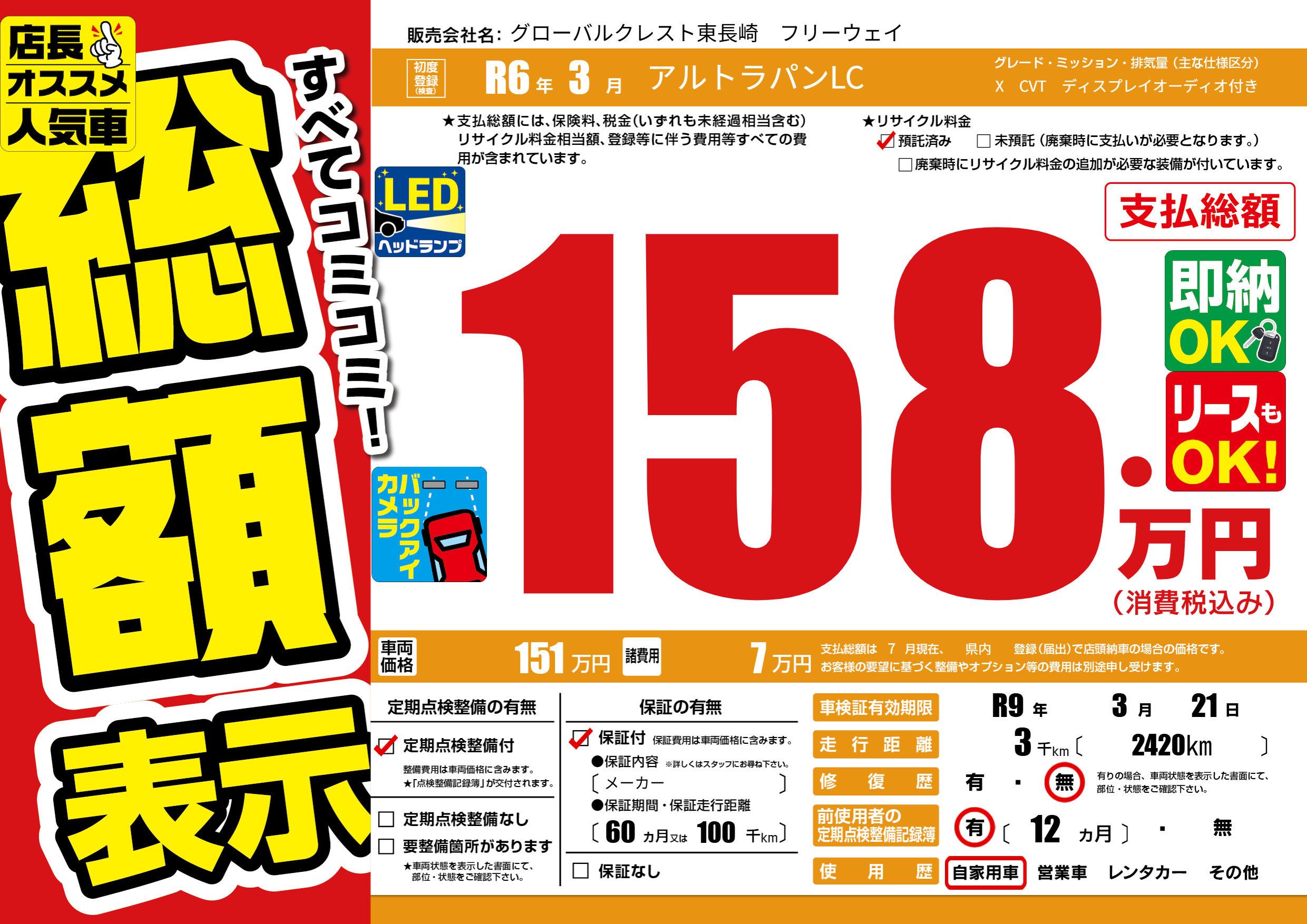 | 車検制限 | R9年 3月 21日 | ||