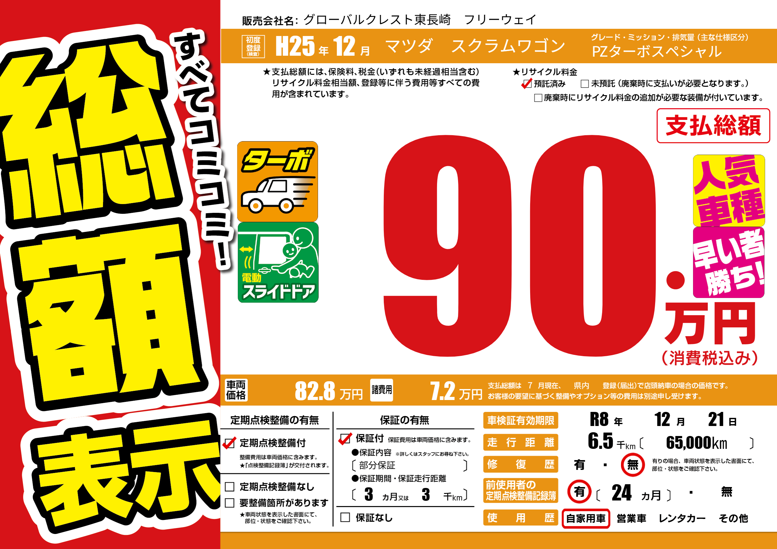| 車名 | マツダ スクラムワゴン | グレード ミッション 排気量 |