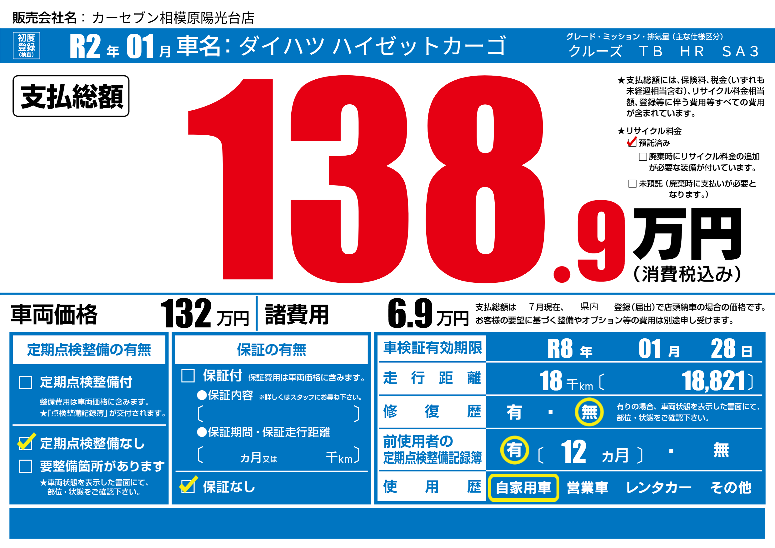 | 定期点検整備 | 定期点検整備なし | ||